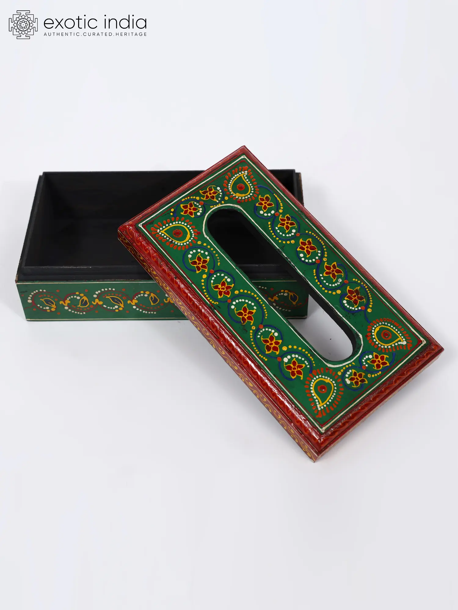This hand-painted wooden tissue box beautifully blends cultural aesthetics with everyday utility. Its intricate design reflects the rich heritage of traditional artistry, adding a touch of cultural elegance to any space. Yet, it serves a practical purpose, meeting the daily need for tissue storage.