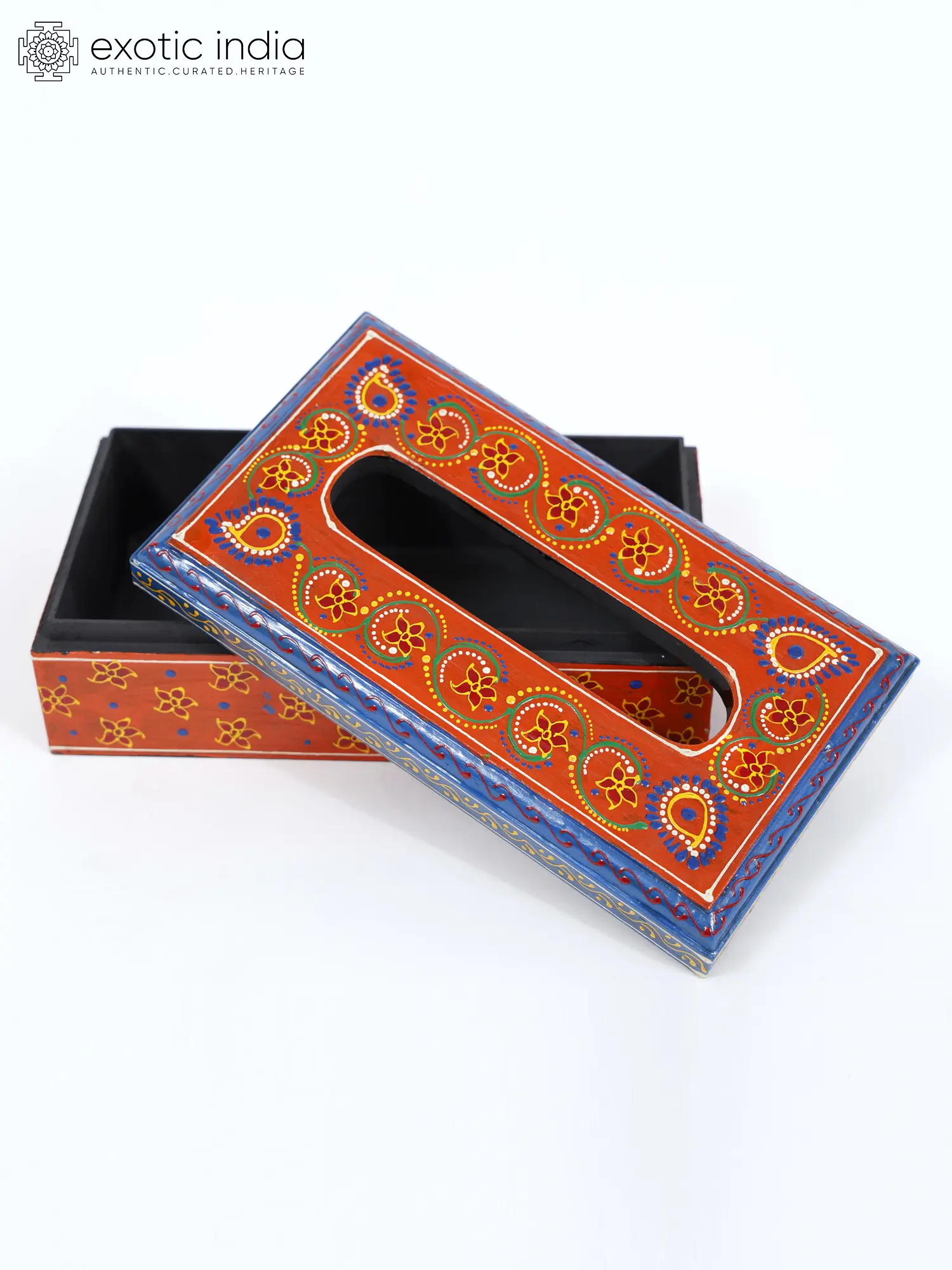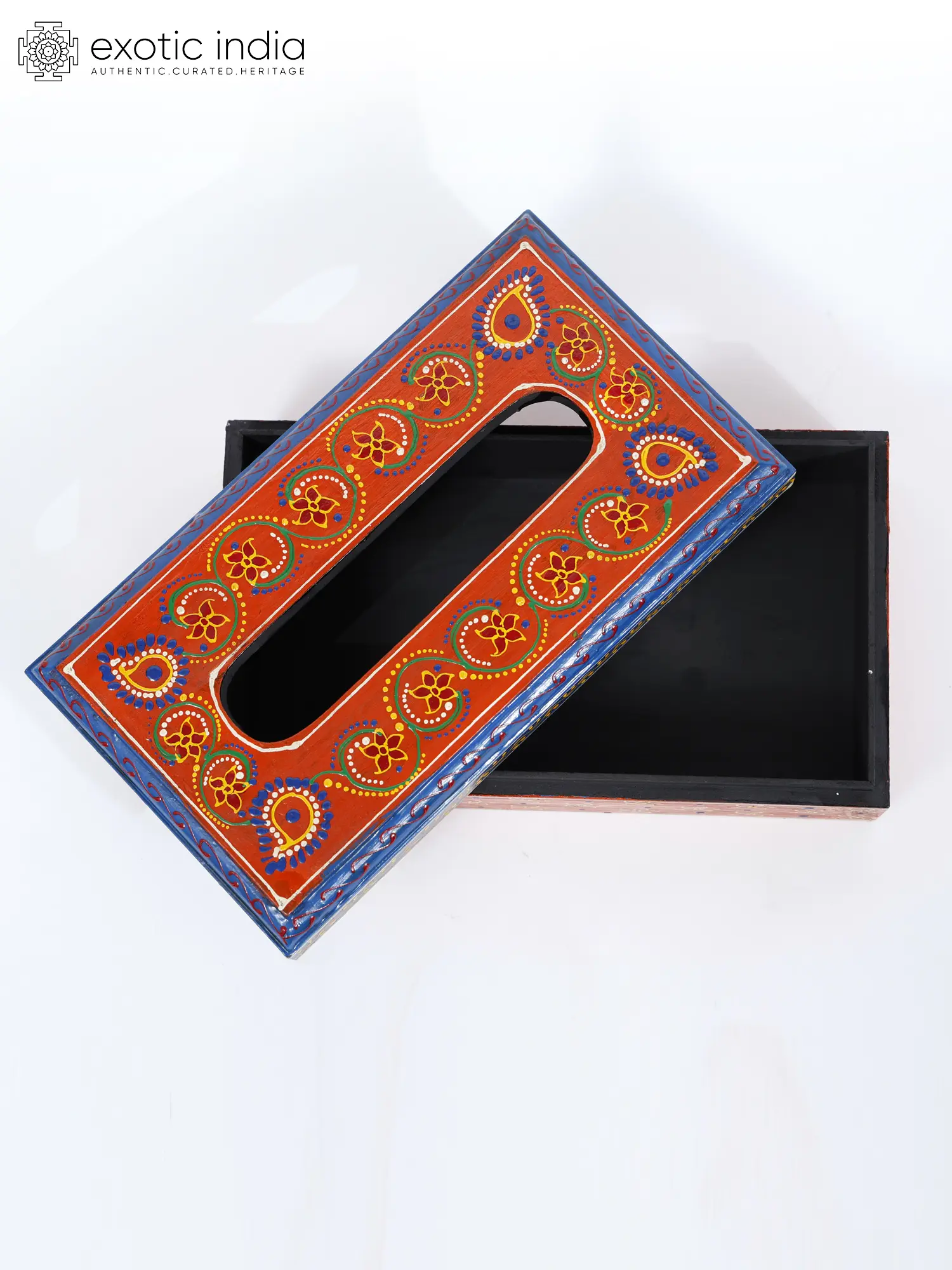 This hand-painted wooden tissue box beautifully blends cultural aesthetics with everyday utility. Its intricate design reflects the rich heritage of traditional artistry, adding a touch of cultural elegance to any space. Yet, it serves a practical purpose, meeting the daily need for tissue storage.