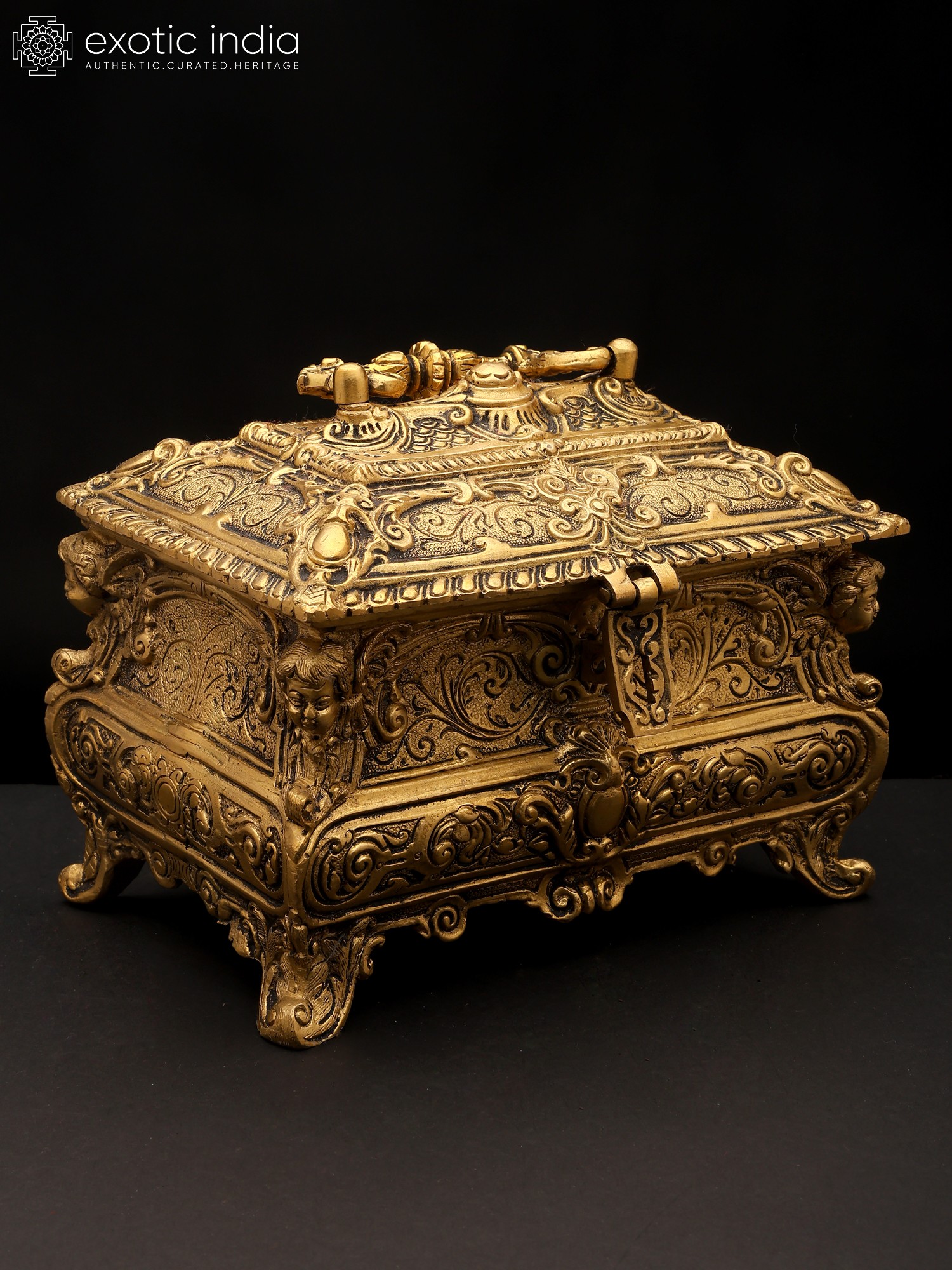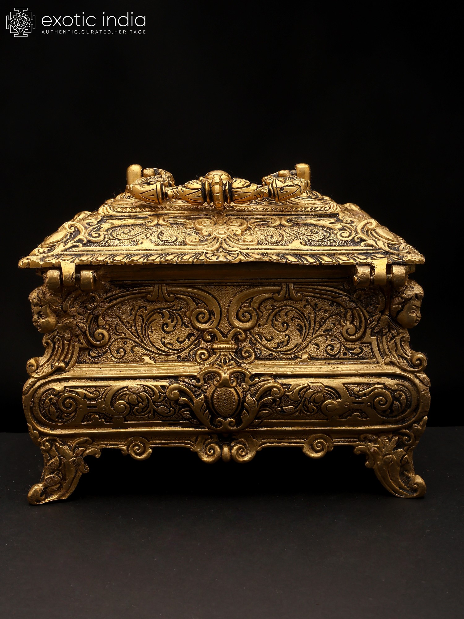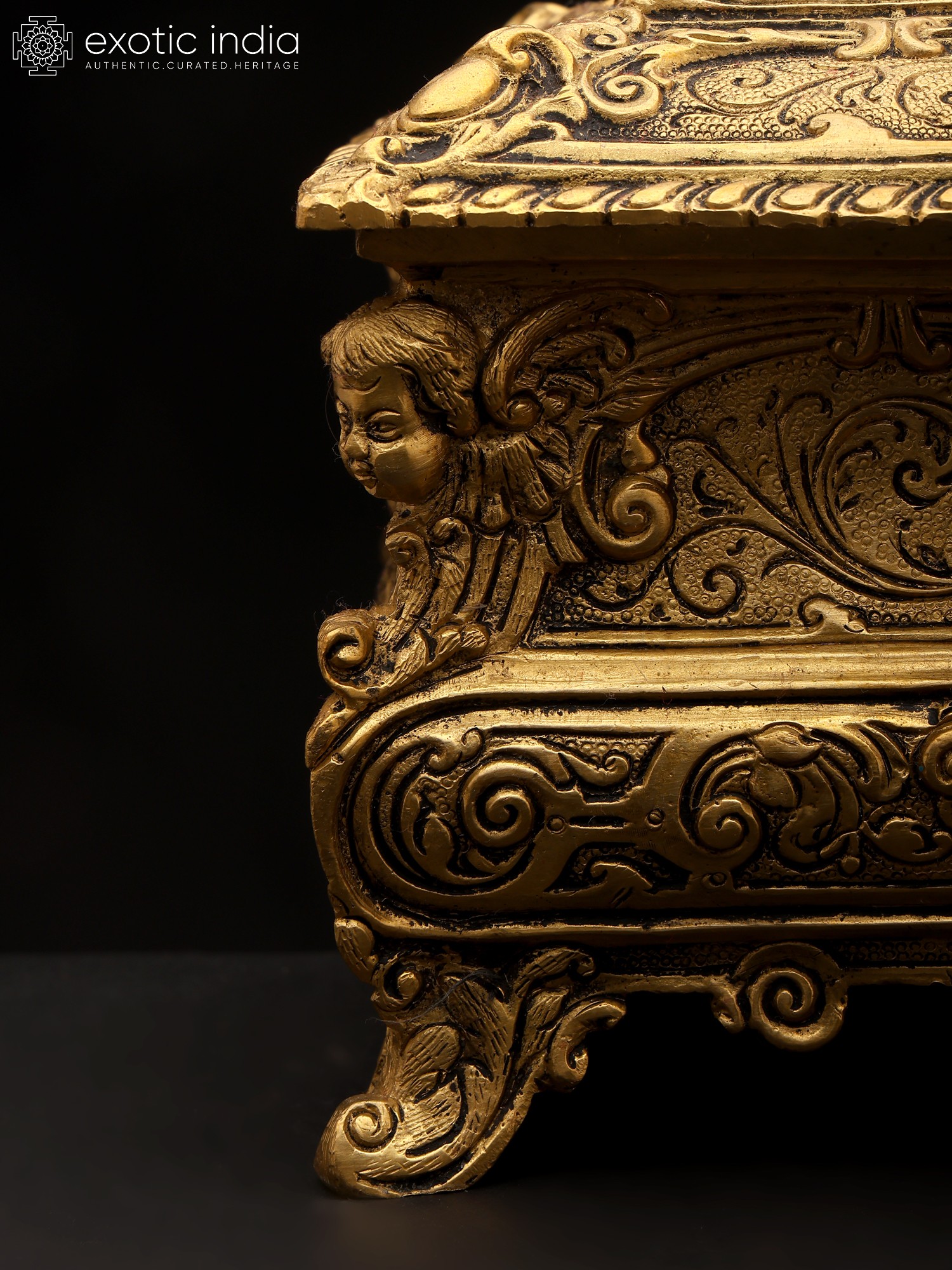 18" Vintage Hand Carved Floral Wooden Decorative Jewelry Box