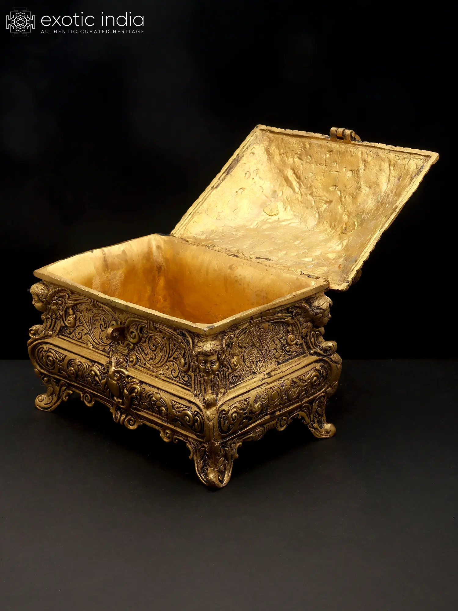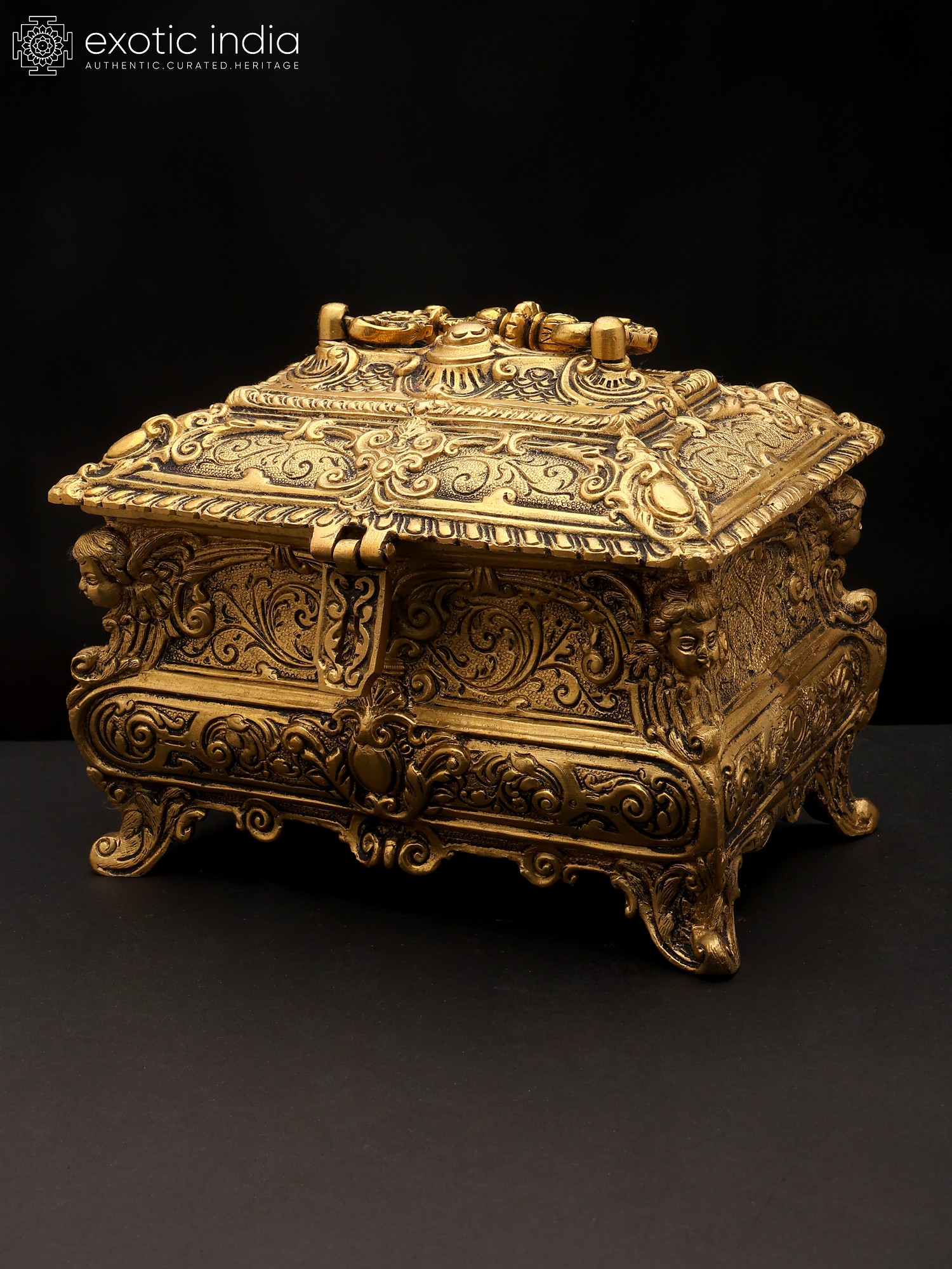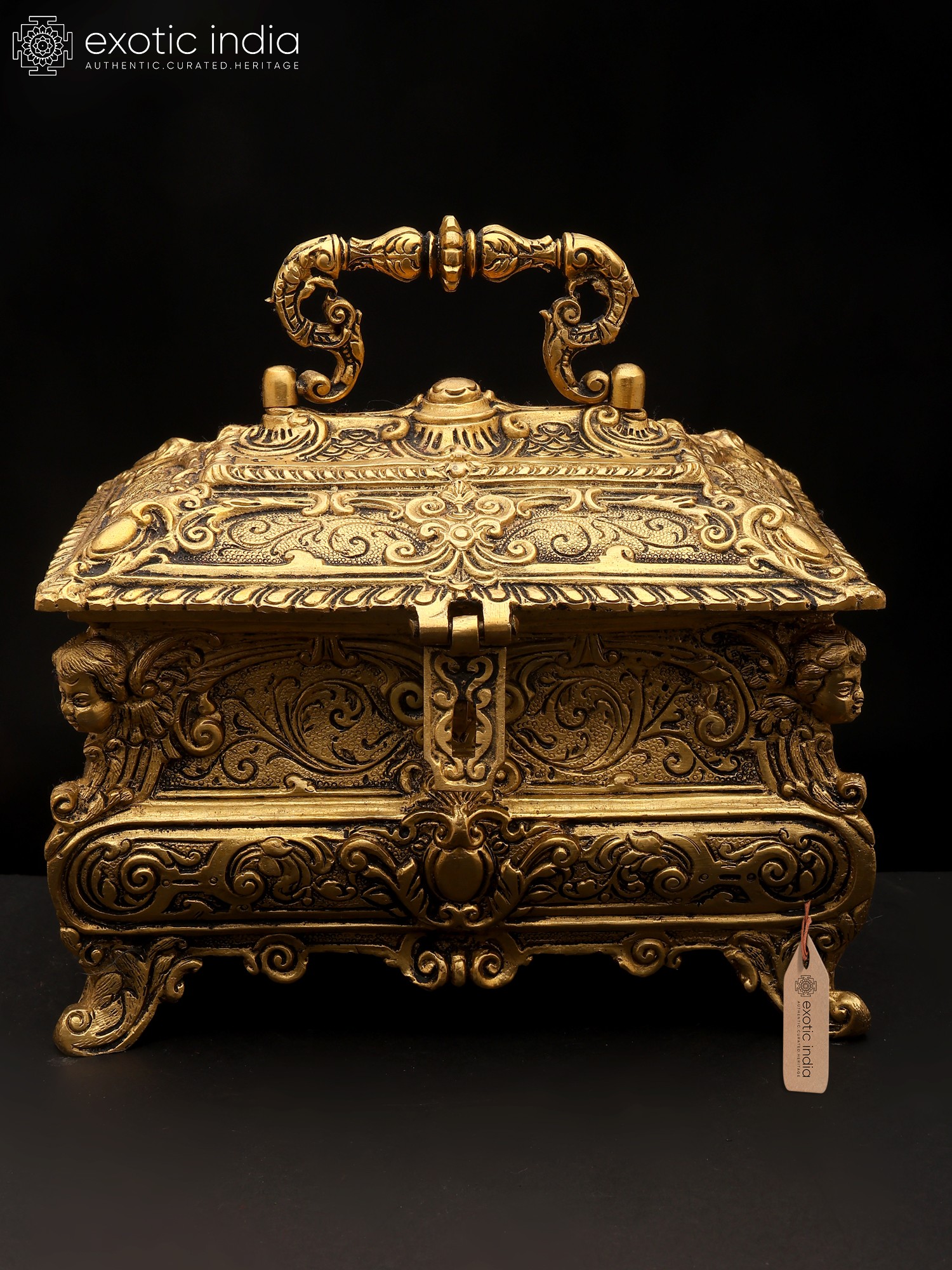 18" Vintage Hand Carved Floral Wooden Decorative Jewelry Box