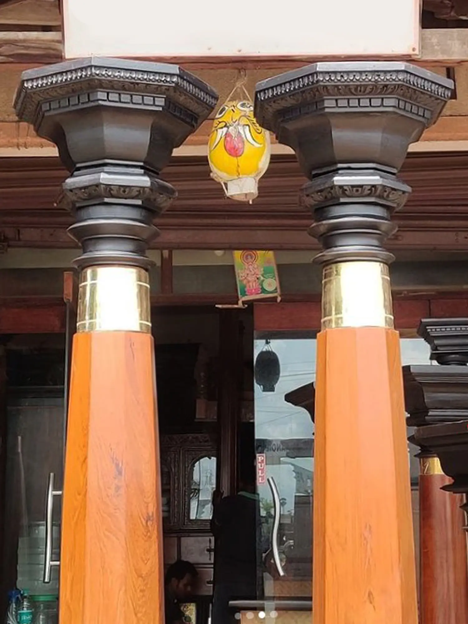 The ancient witnesses of time, Teakwood Pillars, the enduring legacy of architectural prowess. Teakwood, popularly known for its unrivaled durability and resilience, stands the test of ages, much like our spirit. With unparalleled craftsmanship, these pillars transcend mundane structures, reaching spiritual heights. Revered in temples for their symbolism, they support not just the weight of the edifice but also the weight of devotion. Inspired by South Indian traditions, these pillars beckon us to stay rooted in our beliefs, embrace change, and reach for the divine sky of possibilities.