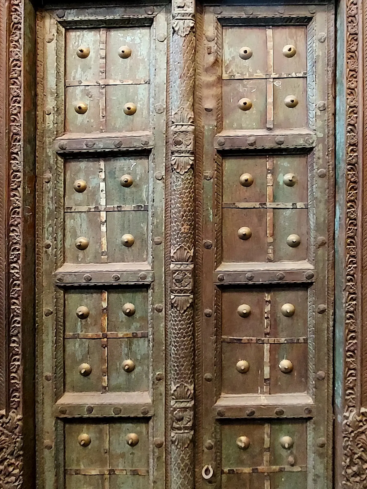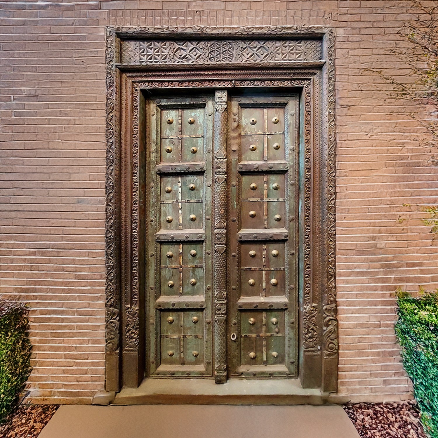 Invite a touch of history and grandeur into your home with this extraordinary double door. Sourced from India, this piece breathes the richness of traditional craftsmanship. Its sheer size commands attention, promising to transform any space into a haven of beauty and intrigue. Imagine it as a stunning entryway, a focal point in a living room, or even a head-turning decorative element leaning against a wall. The possibilities are as boundless as your imagination.