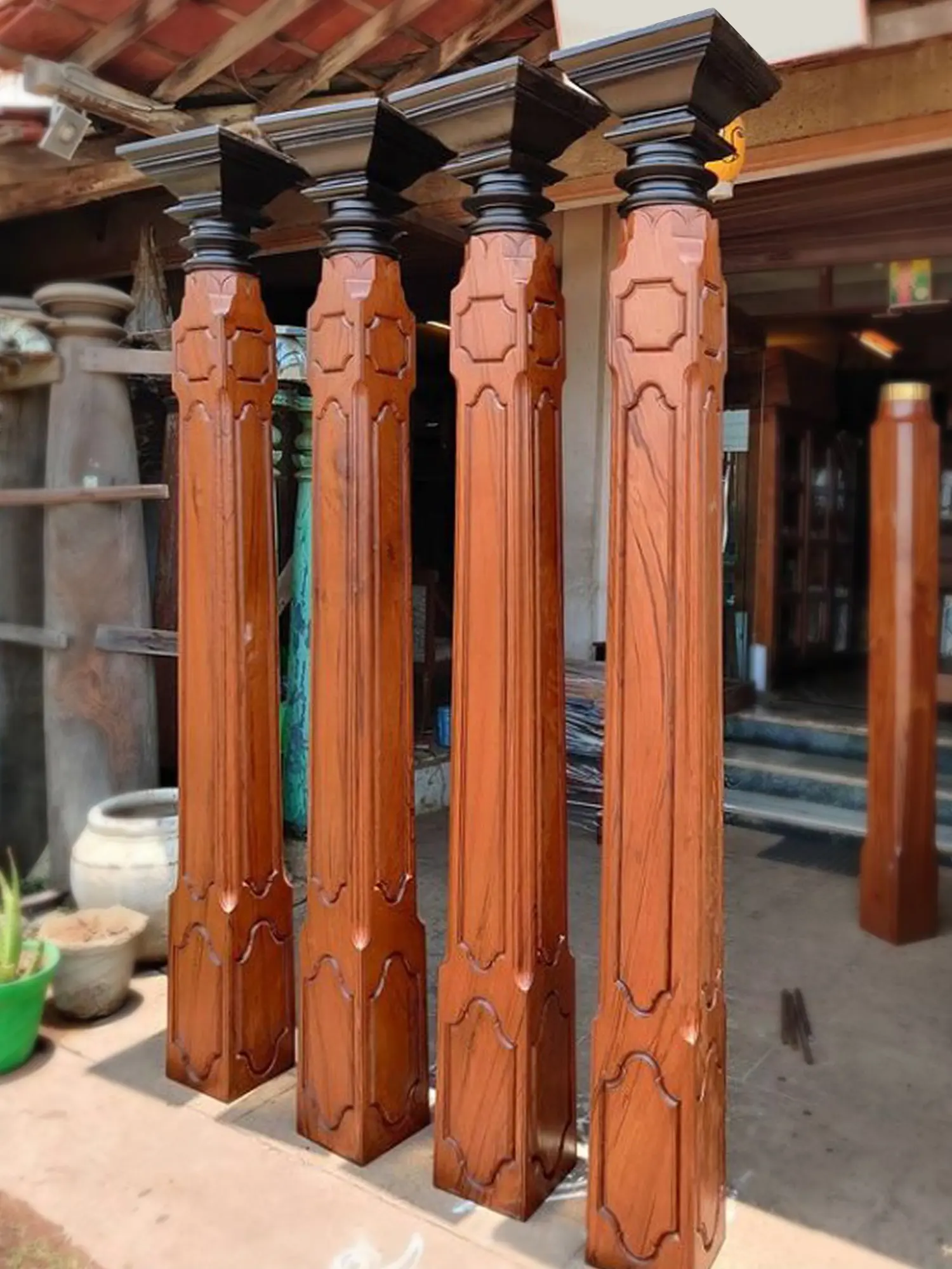 With the grandeur and elegance of our 95" Teakwood Square Pillar Four Pieces set, elevate your environment. Impress visitors, generate a sense of serenity, and add a dash of grandeur to your surroundings by creating a genuinely exceptional atmosphere. These magnificent pillars allow you to fully appreciate Teakwood's unmatched beauty and workmanship.