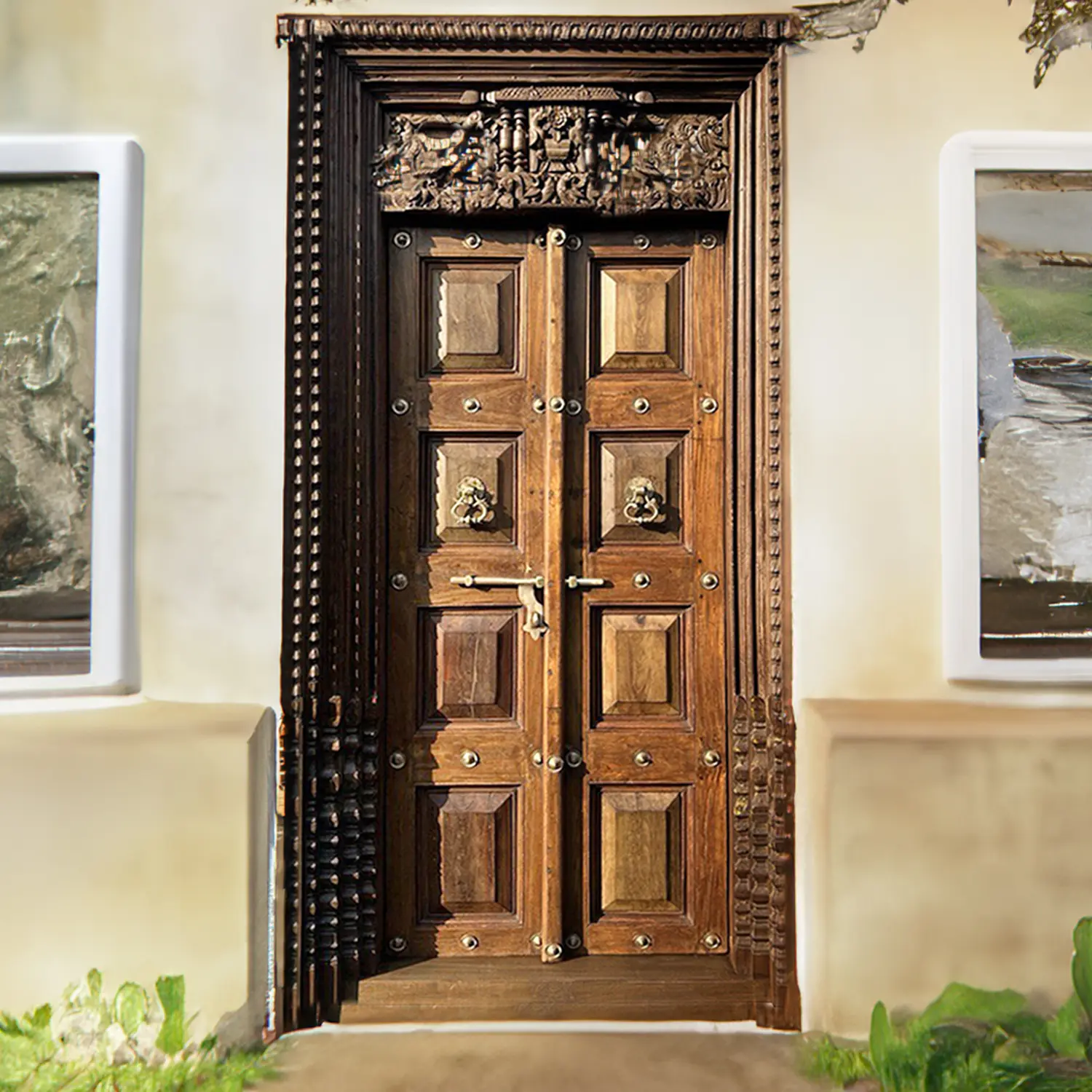 100" Large Size Traditional Floral Hand Carved Indian Woode Door
