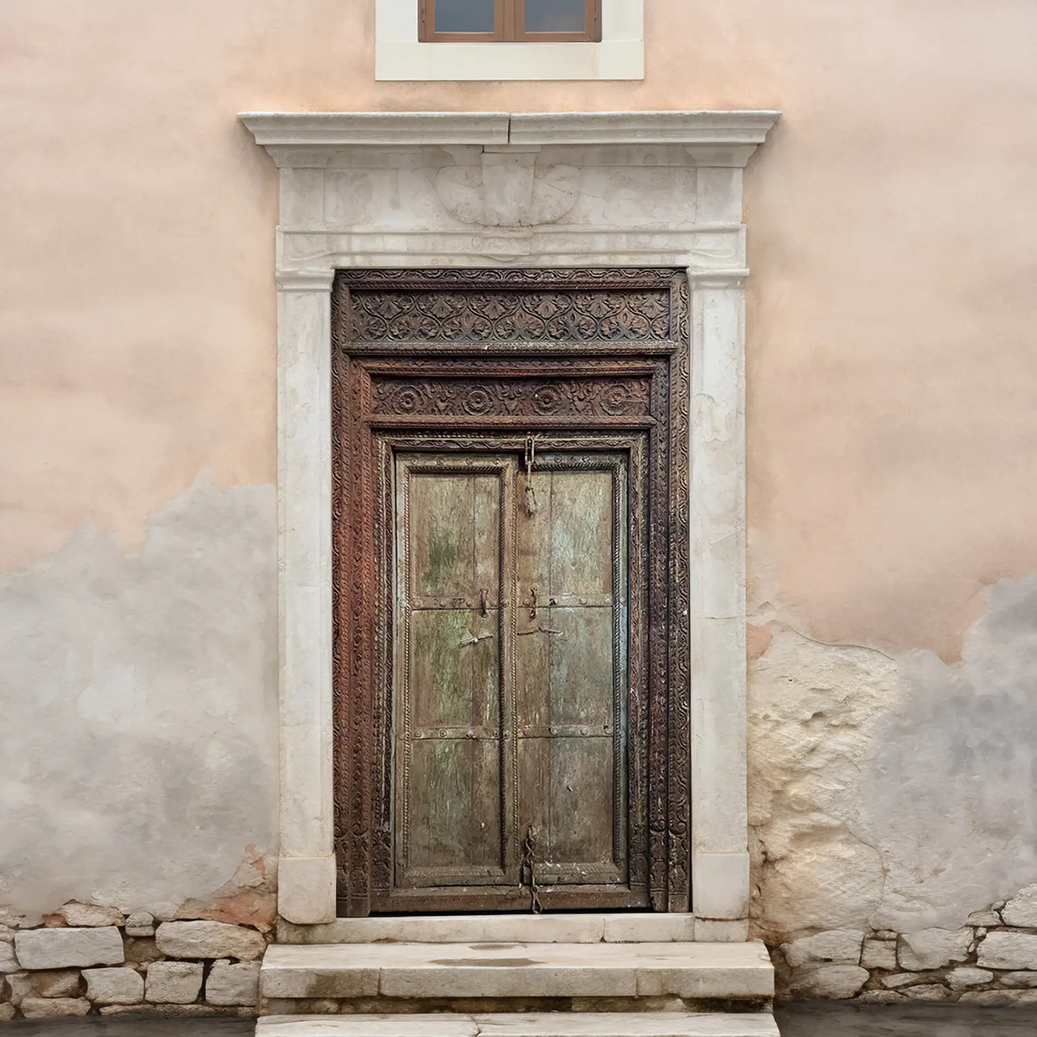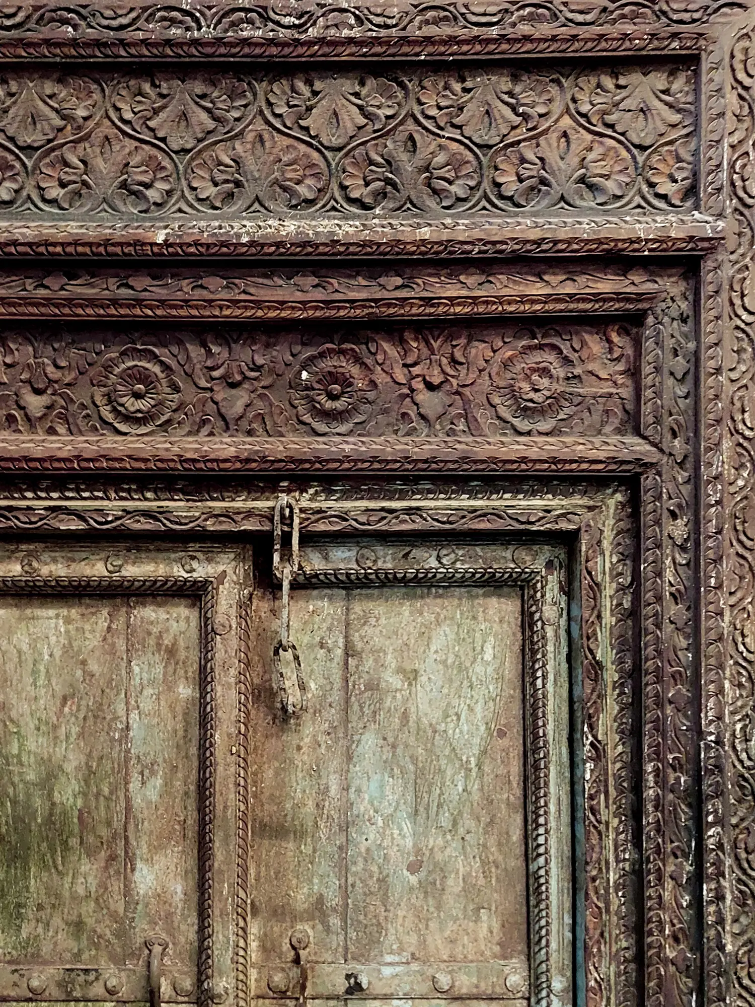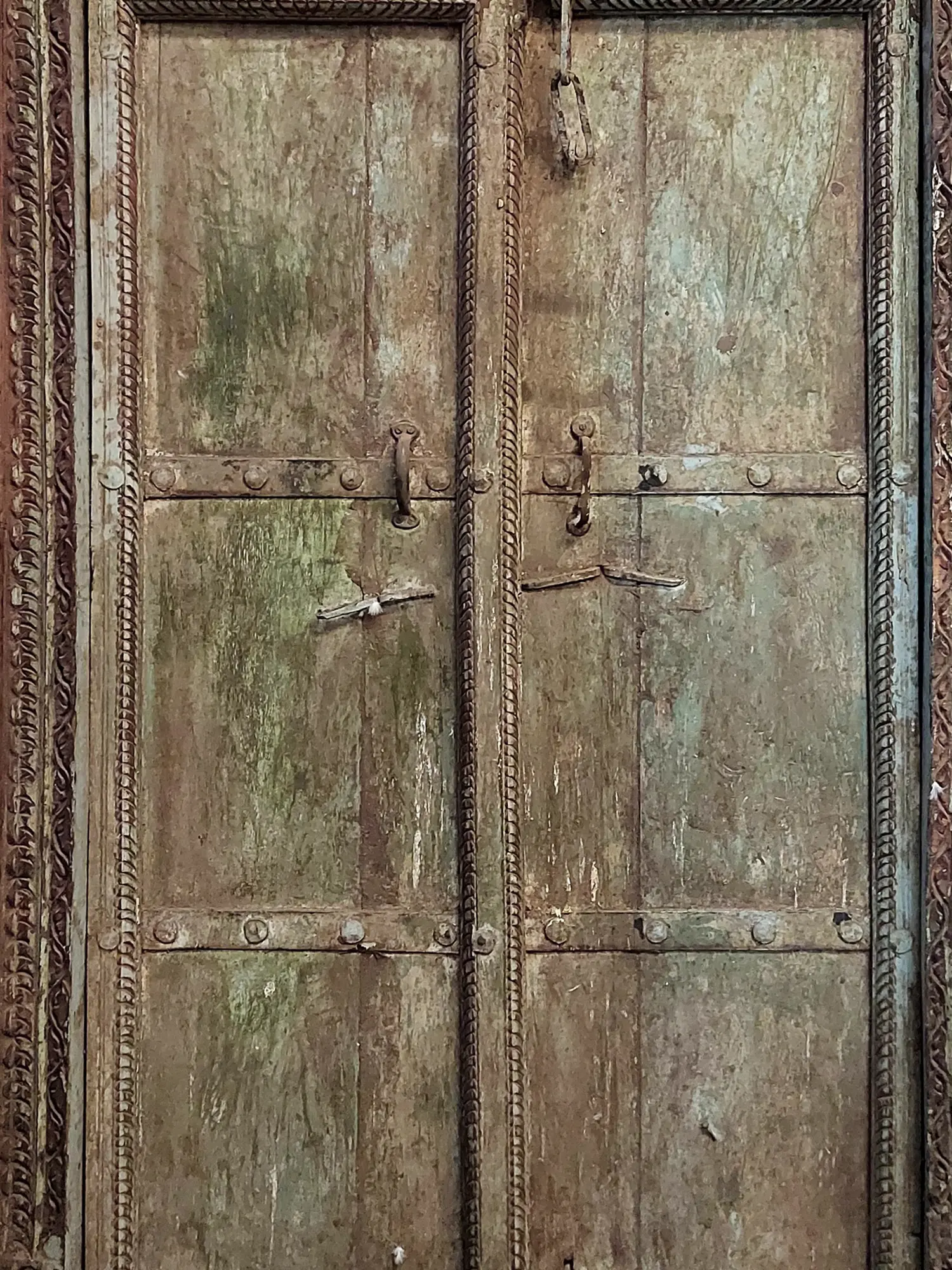 80" Large Iron Detail Rajasthani Wood Door For Home