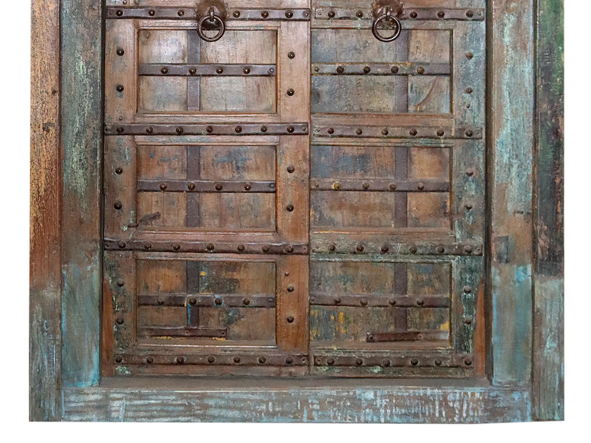 Step into the enchanting world of Rajasthan with this Rajasthani old door. This door captures the essence of the region’s rich cultural heritage and architectural grandeur. The door perfectly encapsulates the rich cultural traditions and magnificent architecture of the area. This traditional work of art was painstakingly crafted and has gorgeous carvings and patterns drawn from Rajasthani customs. The aged aspect of the door, which is adorned with iron pins, adds an element of authenticity and recounts tales of its passage through time. Whether utilised as an interior or exterior door, this antique door transforms into a stunning centrepiece, taking you right back to the opulent palaces and magnificent forts of Rajasthan. It is a cherished addition to any place since it not only adds a sense of opulence but also honours artistic legacy of Rajasthan.