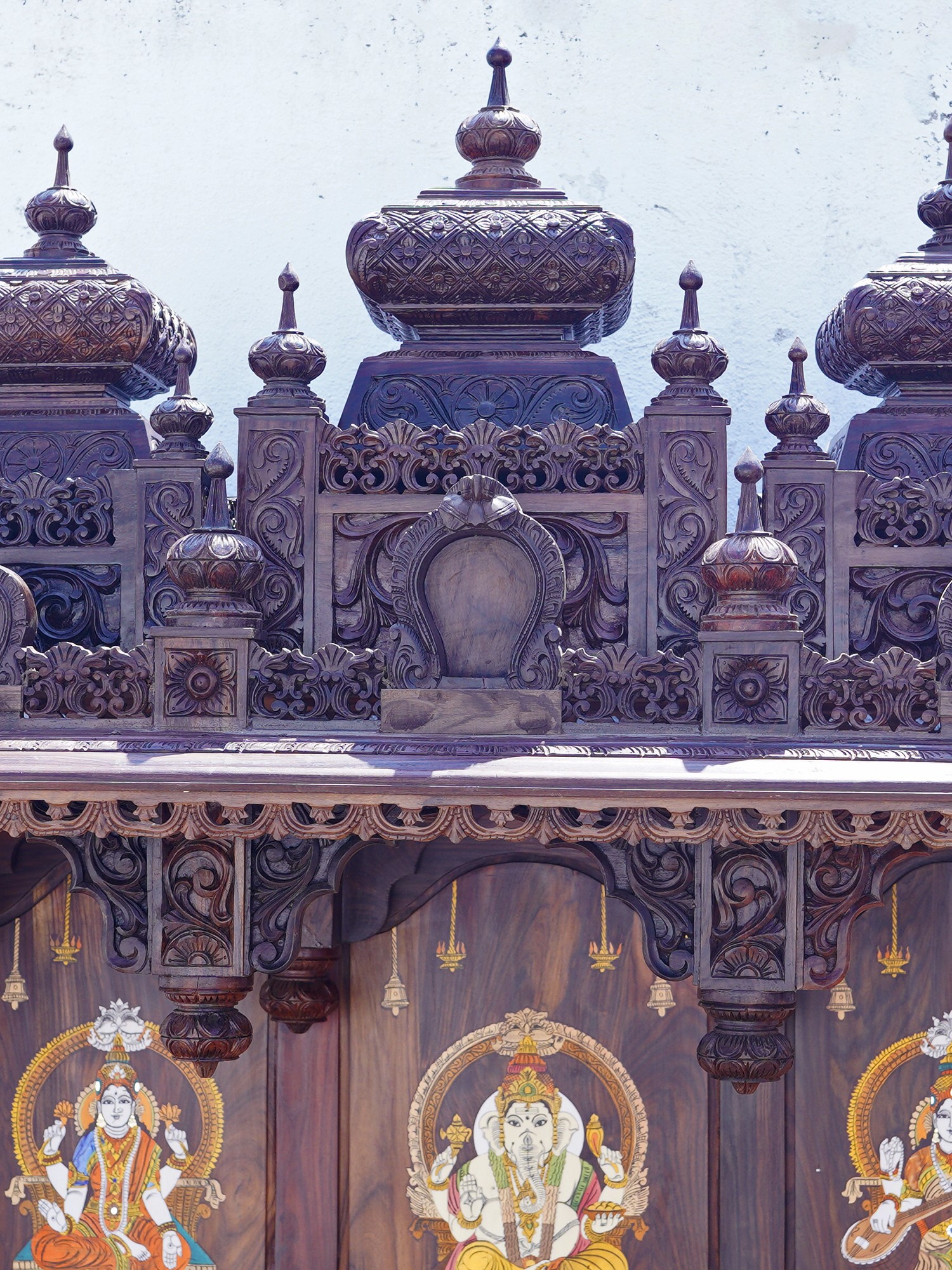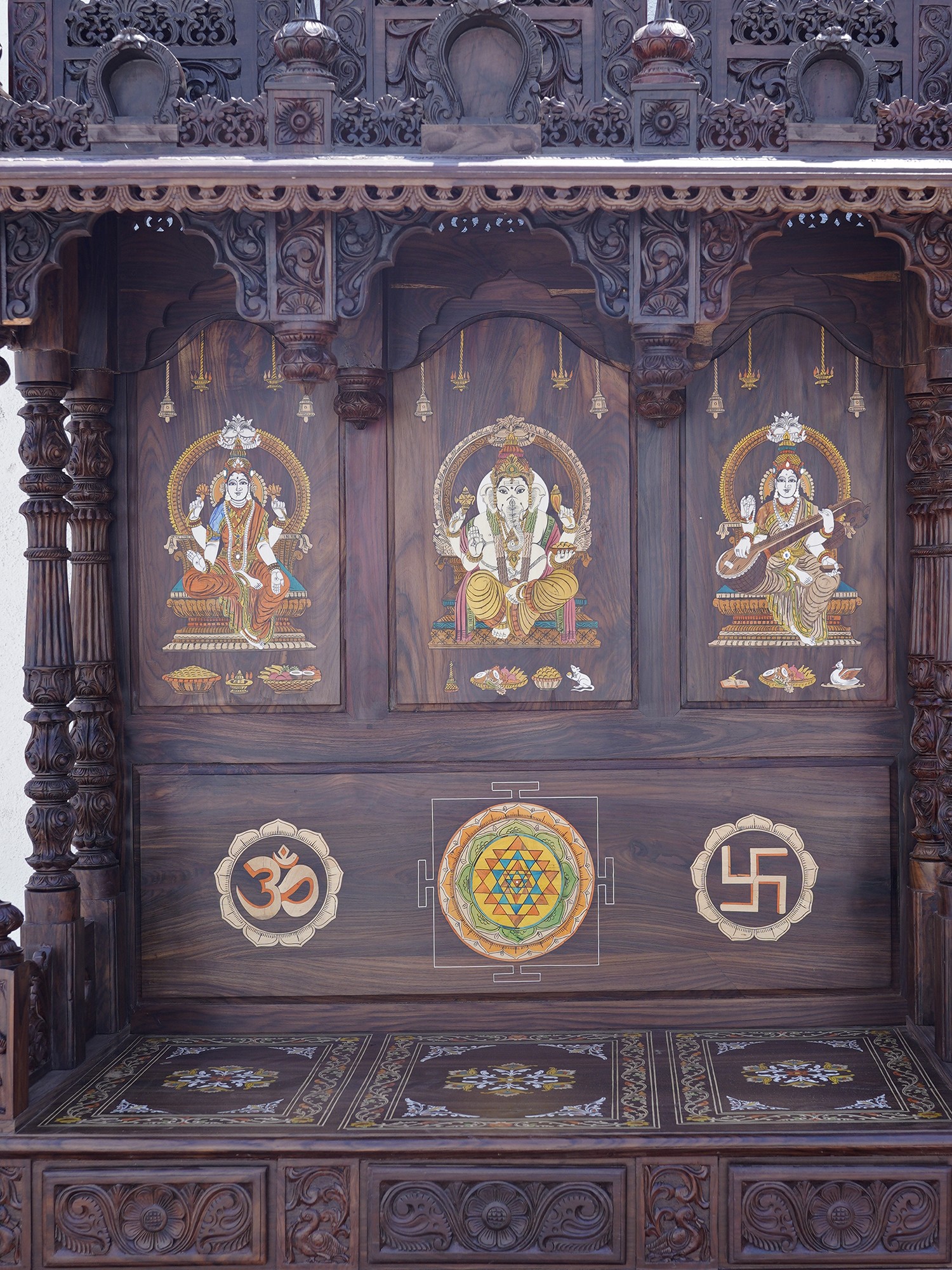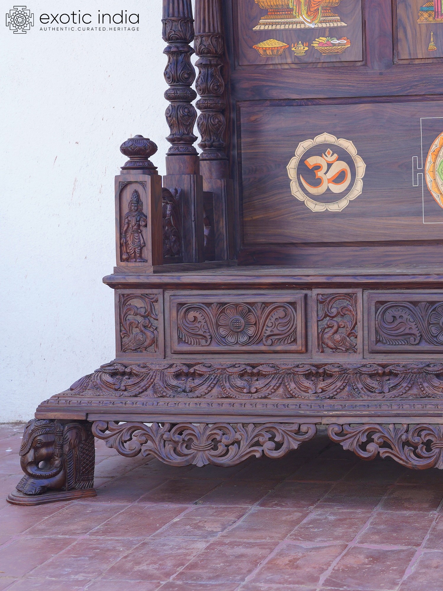 55" Traditional Carved Temple With Vaishnava Symbols | Handmade Rosewood Home Decor Item