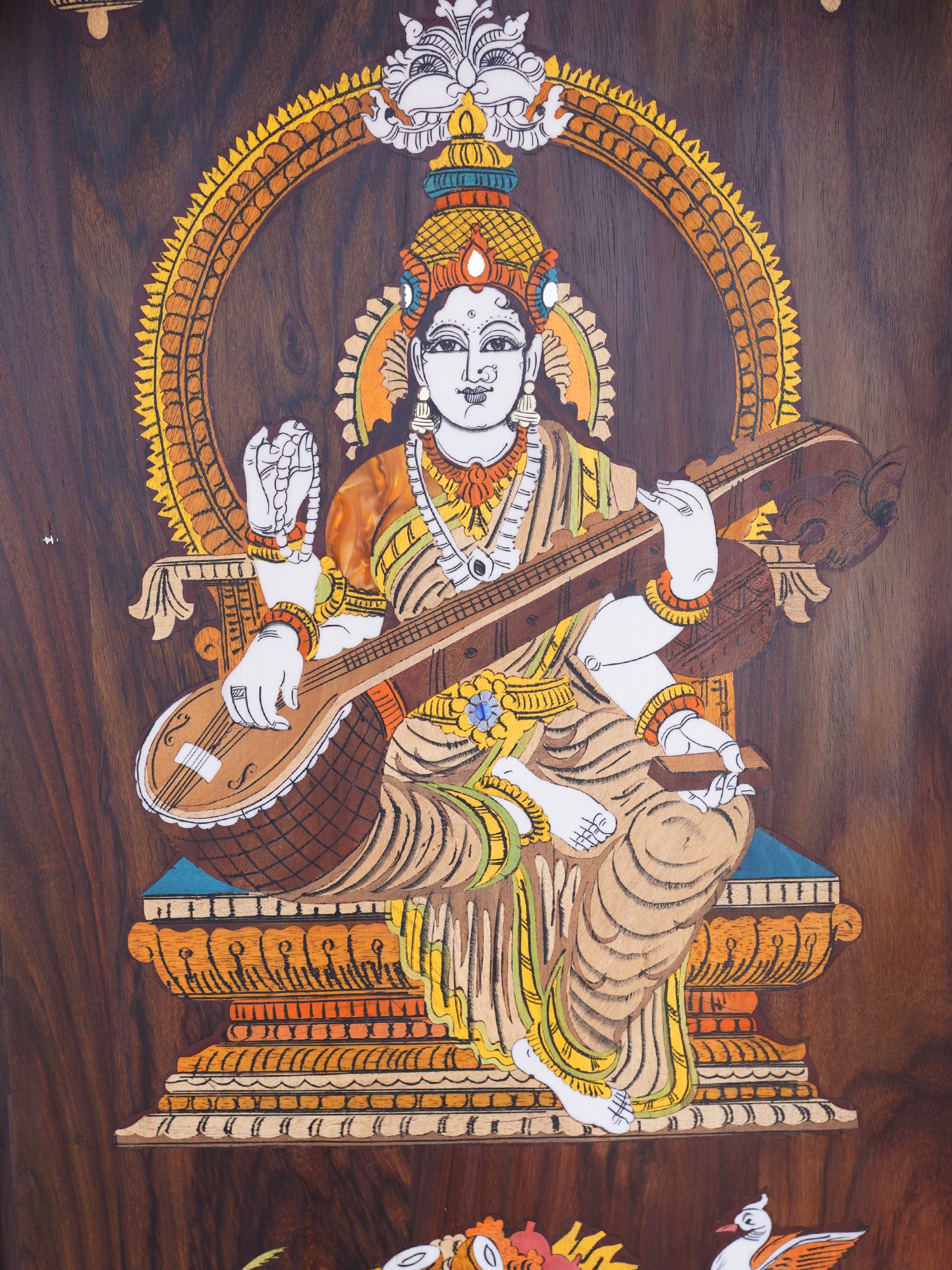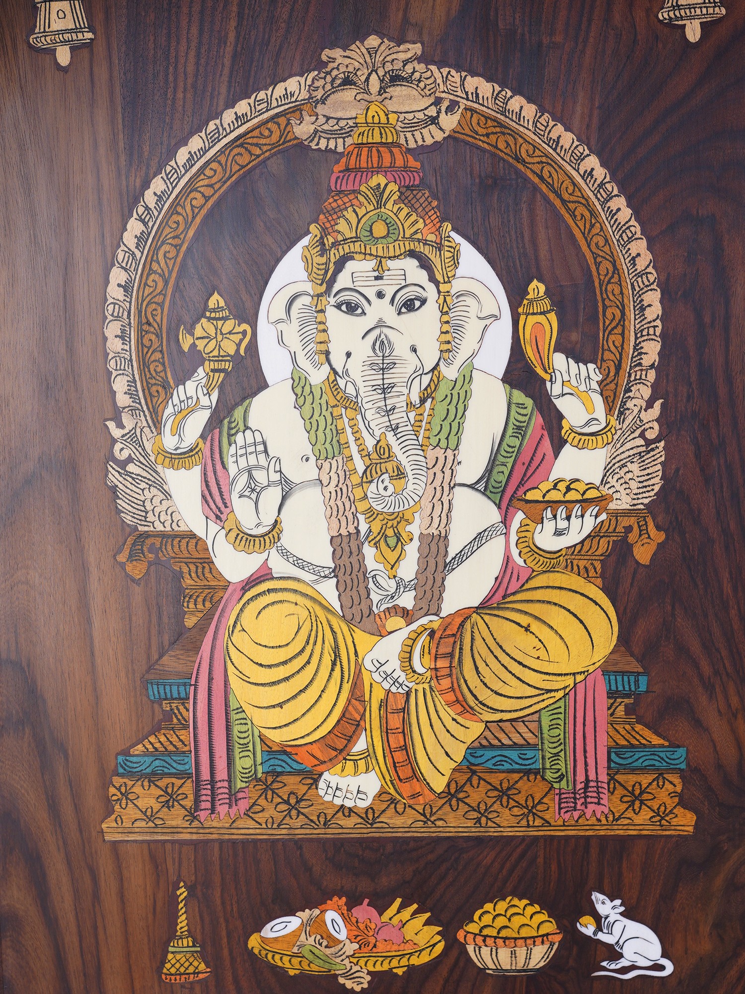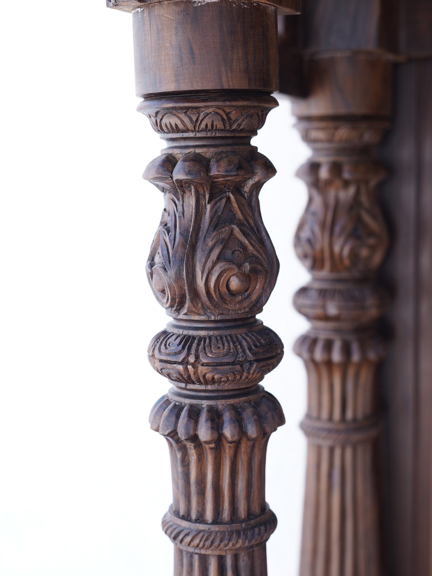 55" Traditional Carved Temple With Vaishnava Symbols | Handmade Rosewood Home Decor Item