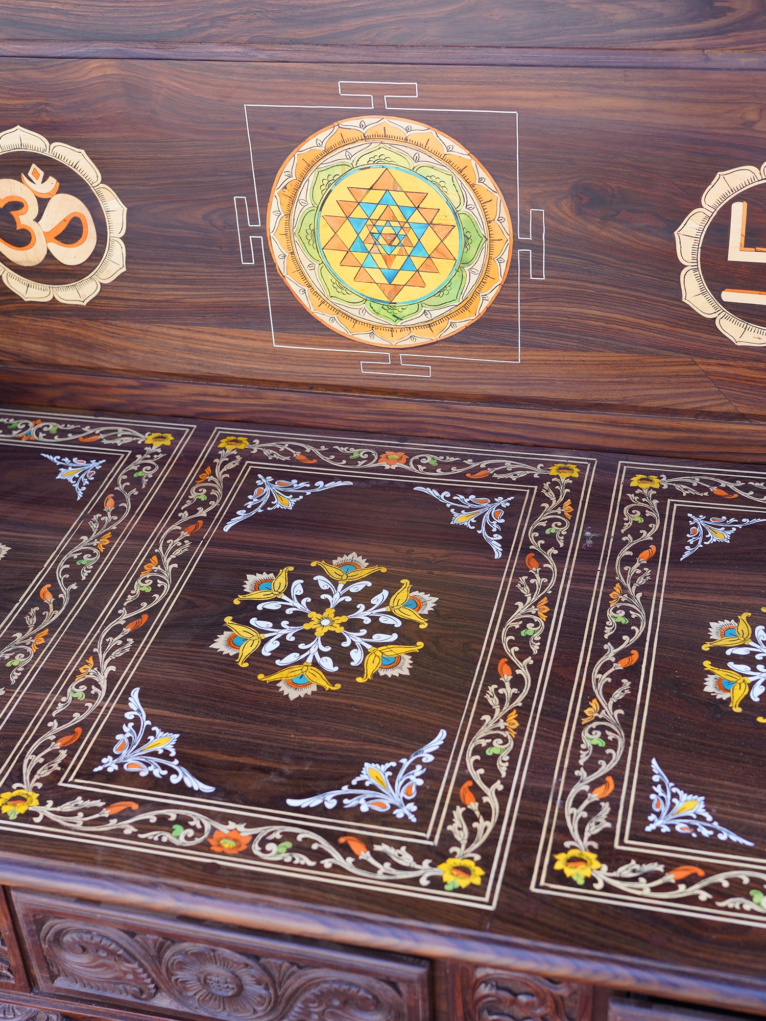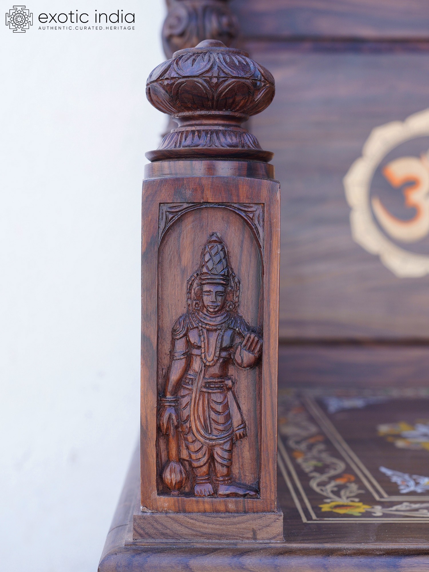 30" Wood Puja Temple With Beautiful Top | Handmade Rosewood Home Decor Item