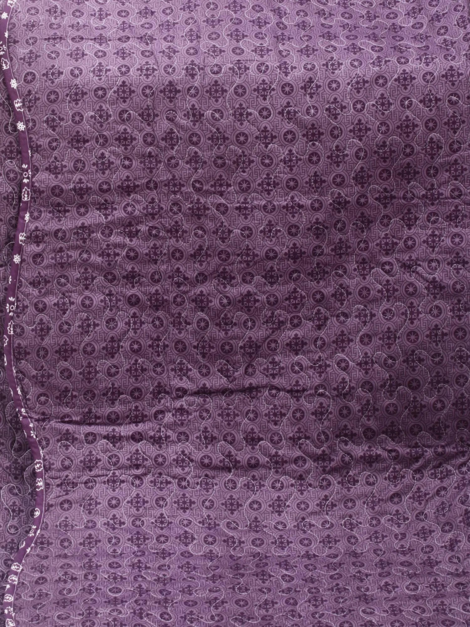 The attractive point of this quilt is the Kalamkari designs in soothing amethyst hues. The reversible nature adds versatility to bedroom decor. The set extends its elegance to matching pillow covers, completing the ensemble with a touch of traditional charm. This ensemble, born from Jodhpur's skilled craftsmanship, not only offers warmth and coziness but also transforms the bedroom into a canvas of cultural beauty, making it a must-have for those seeking a stylish and culturally-infused home.