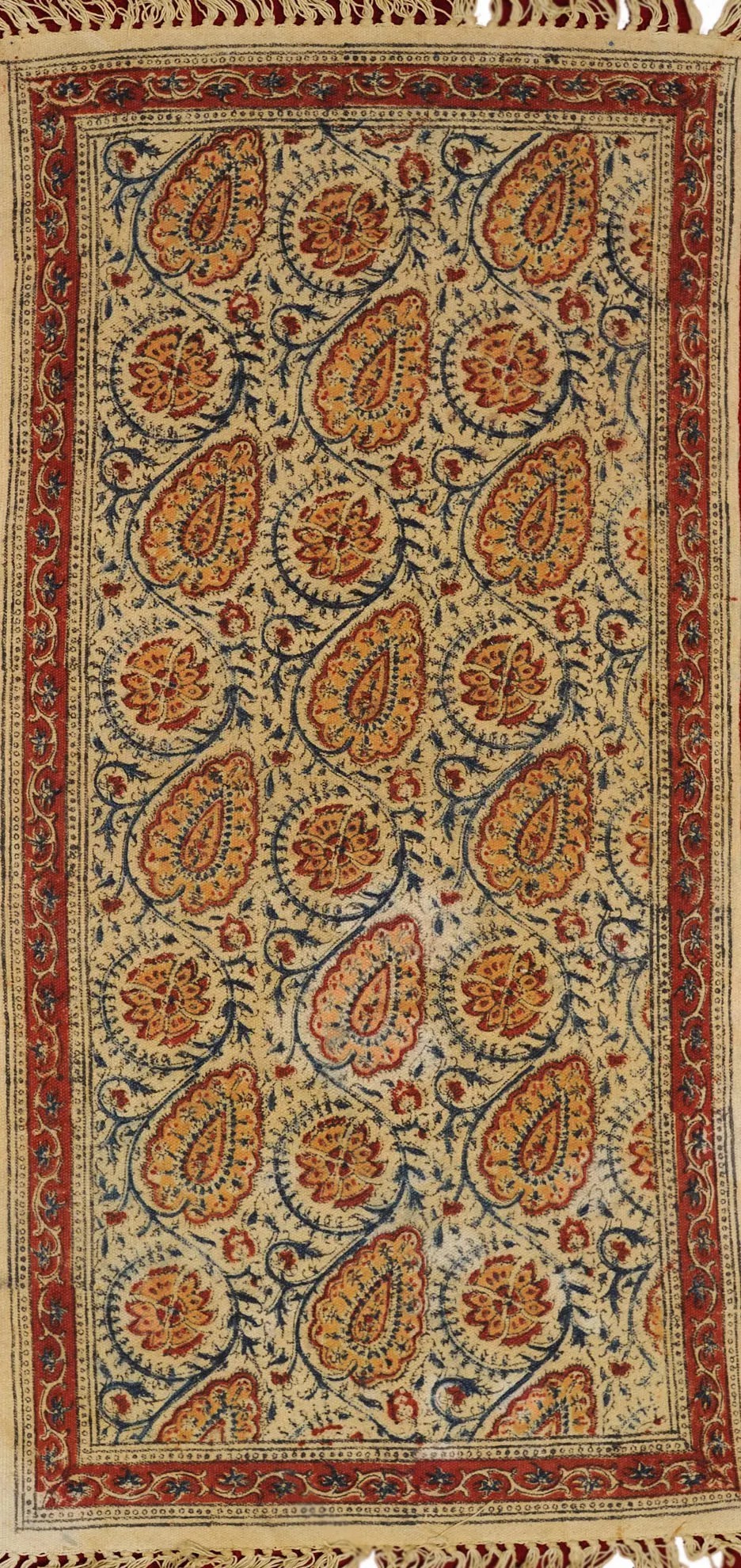 Floral Printed Kalamkari Dupatta with Paisley Motifs and Woven Golden Border