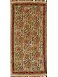 This dhurrie showcases the beautiful art of Kalamkari, an ancient Indian textile art form involving hand-painting or block-printing on fabric. The motifs are delicately rendered, depicting stylized floral patterns and traditional paisley designs. Notice the flowing lines and subtle variations in color, a testament to the artisan's skill and the handmade nature of the piece. The meticulous attention to detail is evident in every element, making it a true work of art. This unique process ensures that no two pieces are exactly alike, giving you a one-of-a-kind treasure that will be admired for years to come.