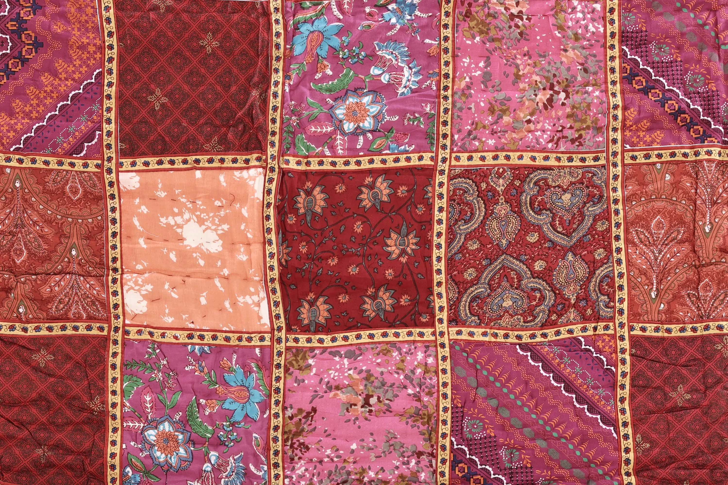 Indulge in the vibrant colours and rich textures of our "Assorted" Patchwork Reversible Pure Cotton Quilt from Jaipur. Handmade in India, this quilt is a beautiful blend of traditional craftsmanship and contemporary design. The reversible design allows you to change the look of your bedding with ease. Made with high-quality fabric, this quilt is not only visually appealing but also comfortable and cosy. Embrace the beauty of Indian textiles and add a touch of warmth and style to your bedroom with this exquisite patchwork quilt.