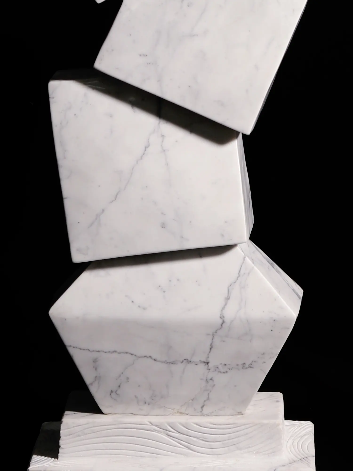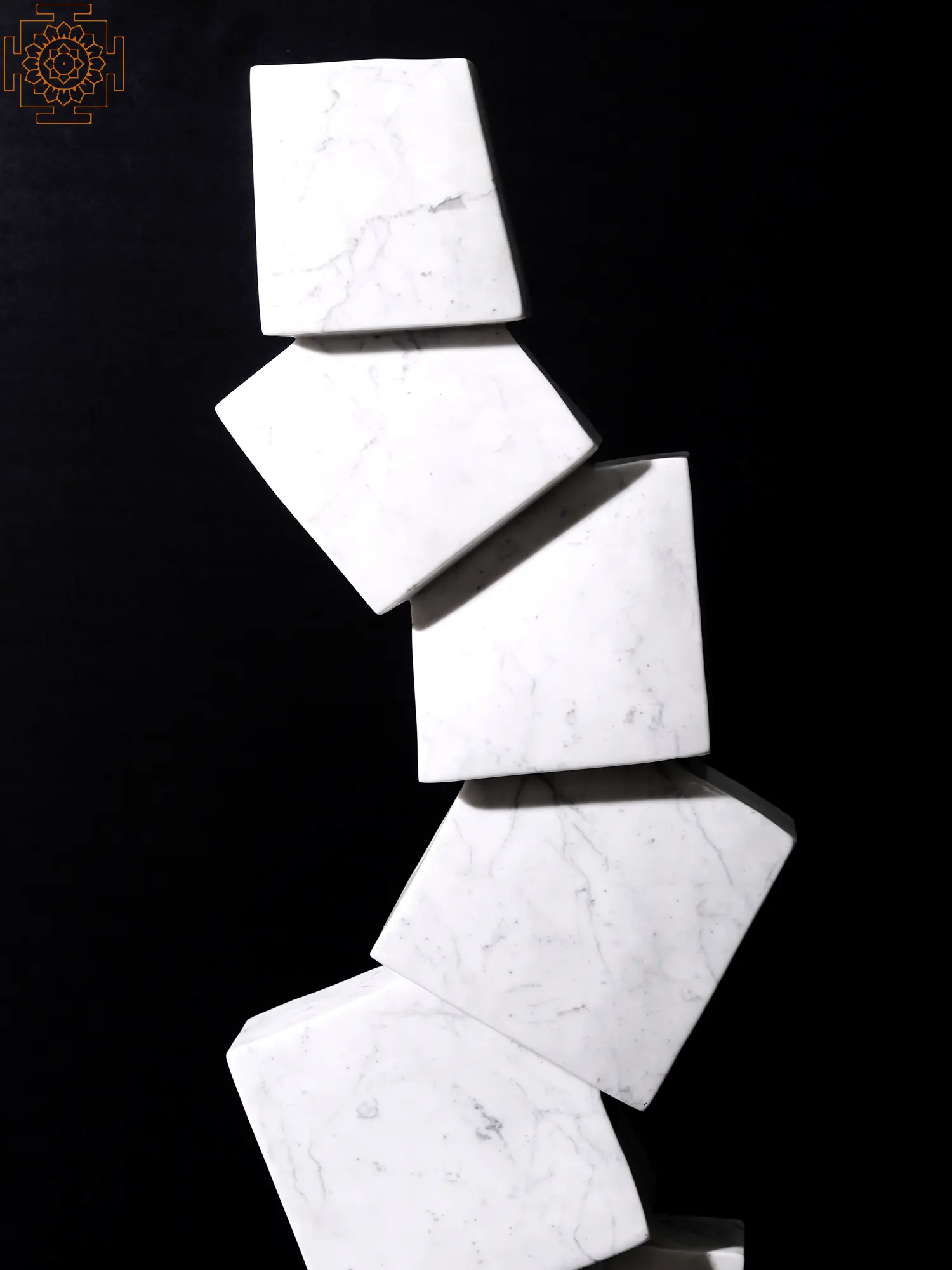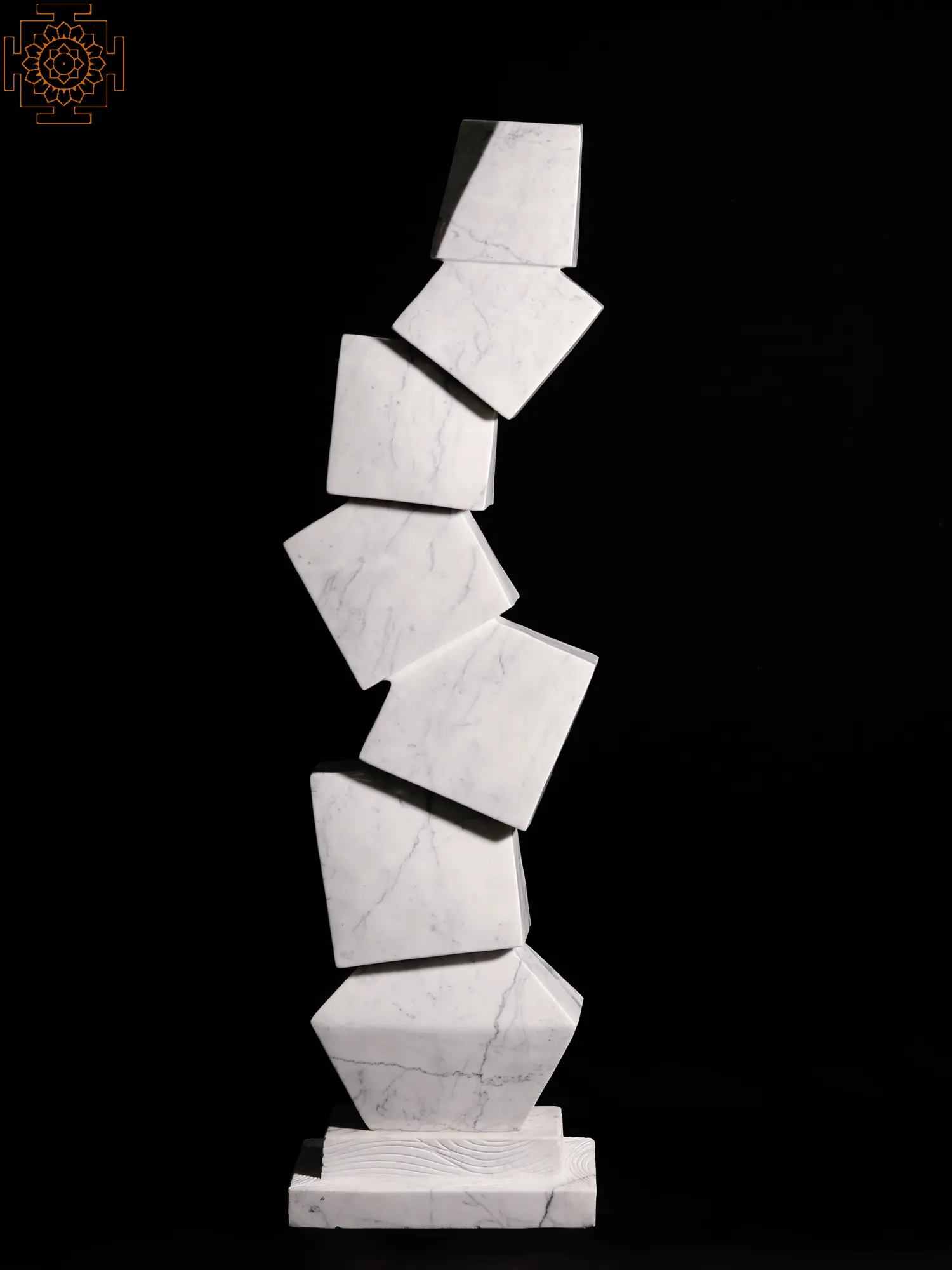 This magnificent piece of Statuario Marble from Italy modern art home decor depicting the ideal marriage of creativity and balance emotes the truth of life, in which our lives are balanced on one another. With its unique arrangement of slightly warped cuboids softly lying on their edges and resting on a polygon, this Asymmetrical Balancing Cube sculpture defies convention. Each cuboid, painstakingly crafted and polished with a distorted one-sided appearance, shows the beauty of mathematics as well as the precision of artistic expression. This intriguing work demonstrates the artist's talent as well as his unique insight into human life. This sculpture is ideal for anybody looking for a distinctive and thought-provoking addition to their area, and it is sure to spark some discussion.