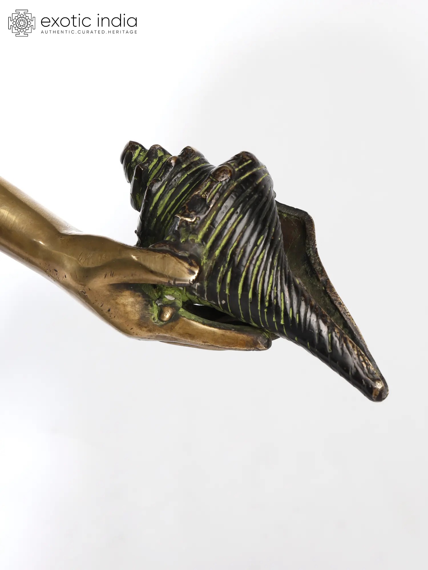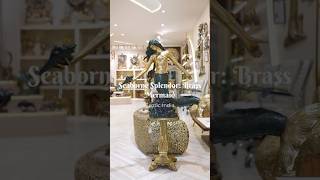 Her hands flung on sides, her tresses flowing and her countenance is dramatic, carrying a sense of force and movement, infusing the brass artwork with drama.