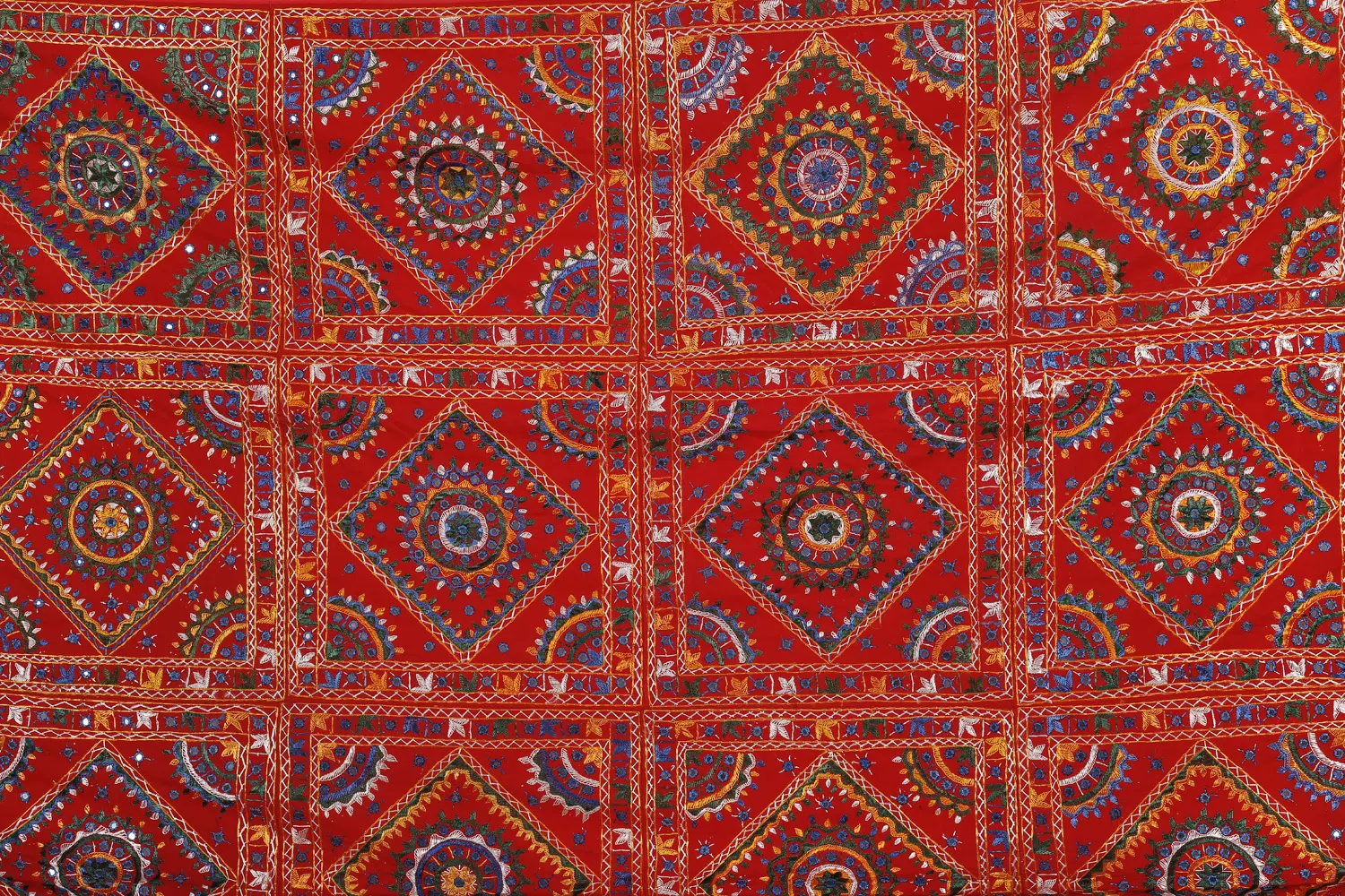 Bedcover from Jaipur with Embroidered Motifs and Mirrors
