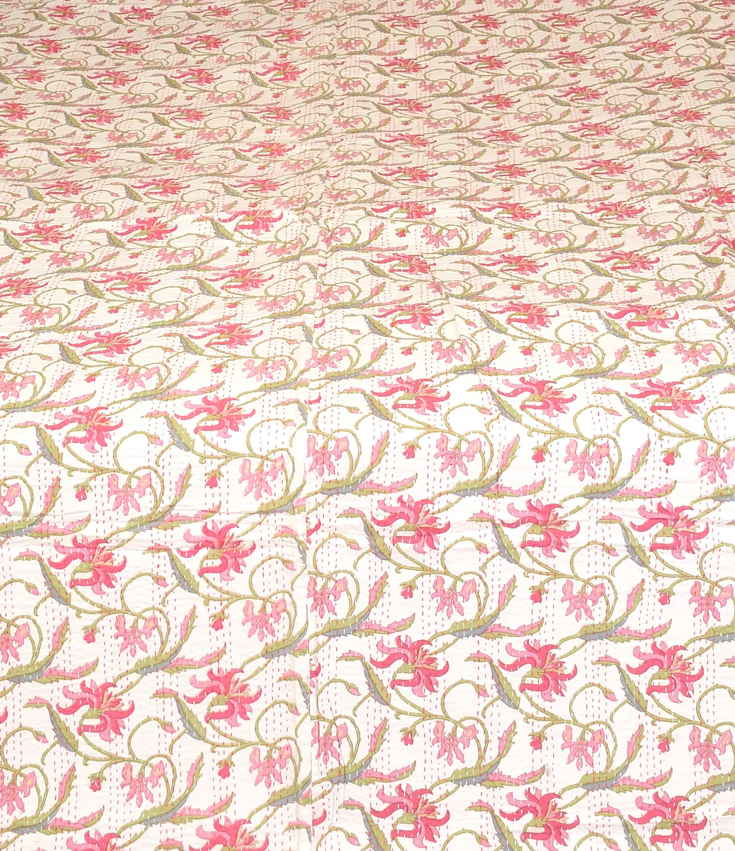 Bedcover from Jodhpur with Printed Flowers and Kantha Straight Stitch