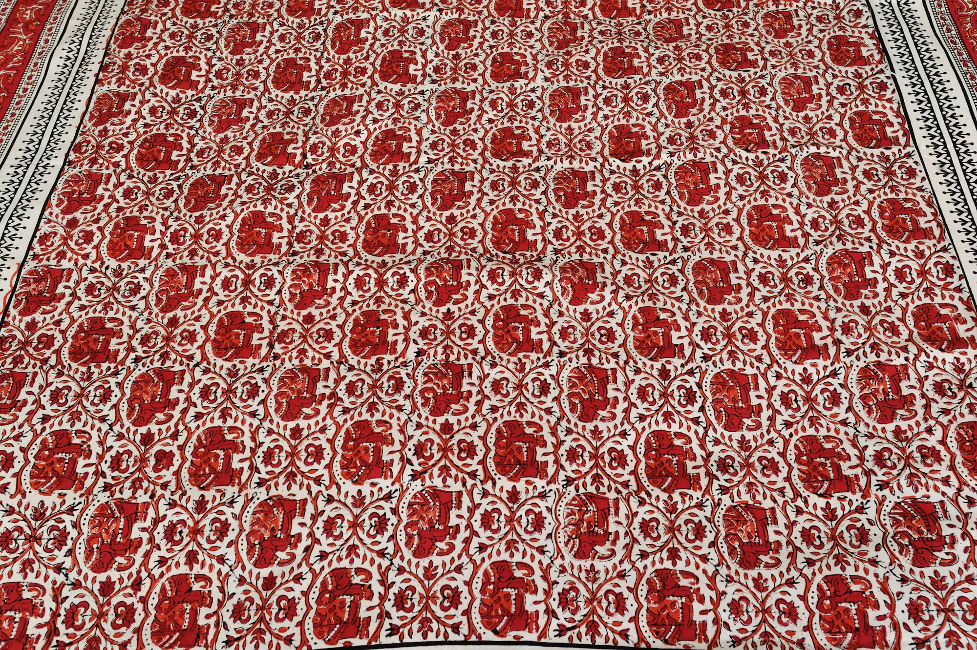 From the heart of Pilkhuwa's artistic tradition emerges a textile masterpiece, the bedsheet with block-printed elephants. Delicate and charming, the block-printed elephants gracefully capture the essence of the region's heritage. When this bed sheet drapes over your bed, it magically transforms your sleeping space into a cultural sanctuary where the artistry of Pilkhuwa shines bright. This isn't just fabric, it's a living tribute to the region's artistic legacy, offering both comfort and an artistic delight for your bedroom.