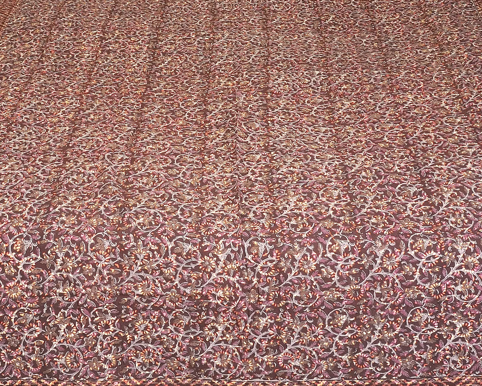 Russet-Red and Cream Floral Printed Bedspread from Pilkhuwa