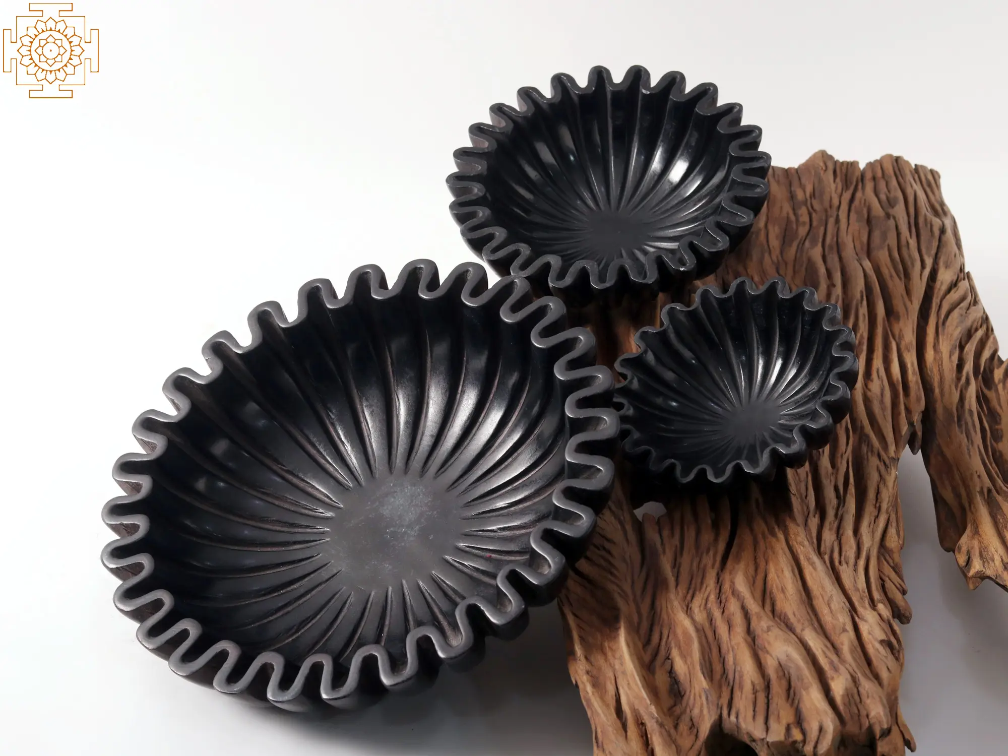 Elevate your dining experience with these stunning bowls. Crafted from genuine black marble, each piece exhibits a unique veining pattern, making it a one-of-a-kind addition to your home. The deep, rich color and smooth, polished surface exude sophistication, whether used for serving appetizers, displaying decorative items, or simply as standalone pieces of art.