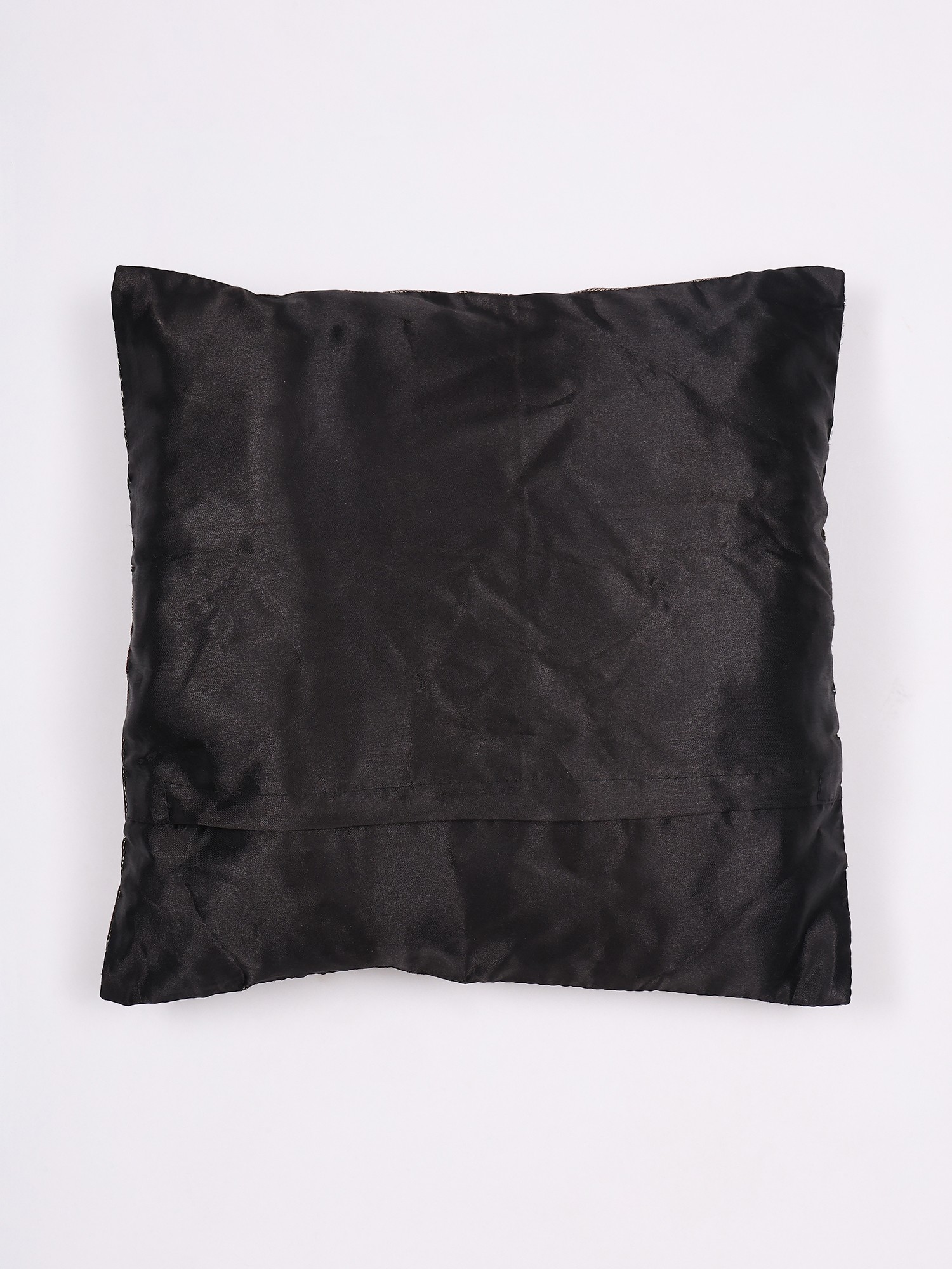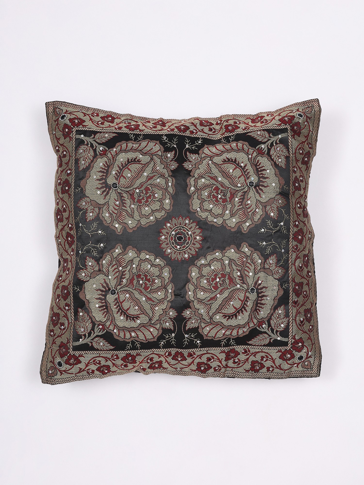 Black-Onyx Floral Woven Cushion Cover with Sequins Work