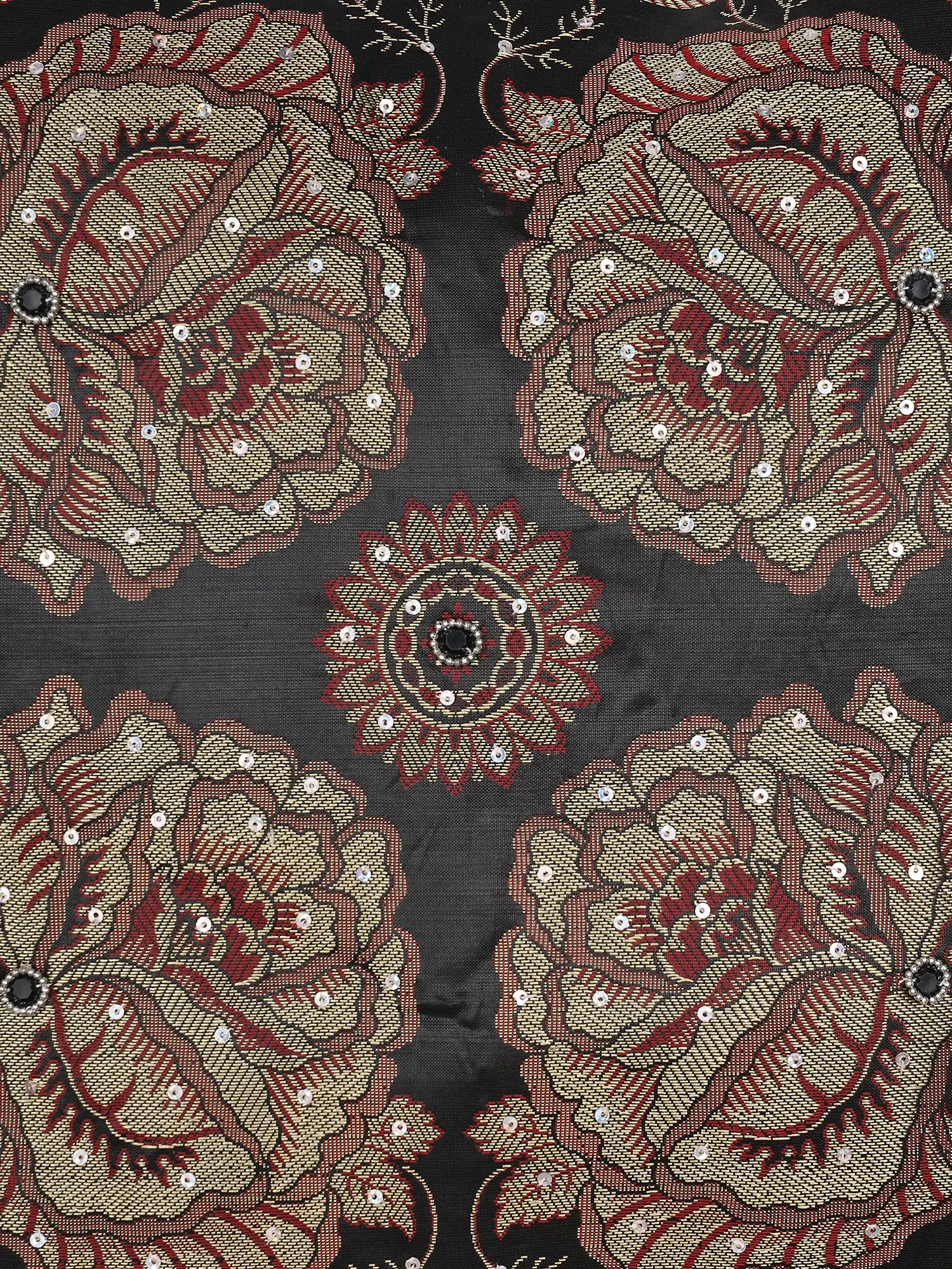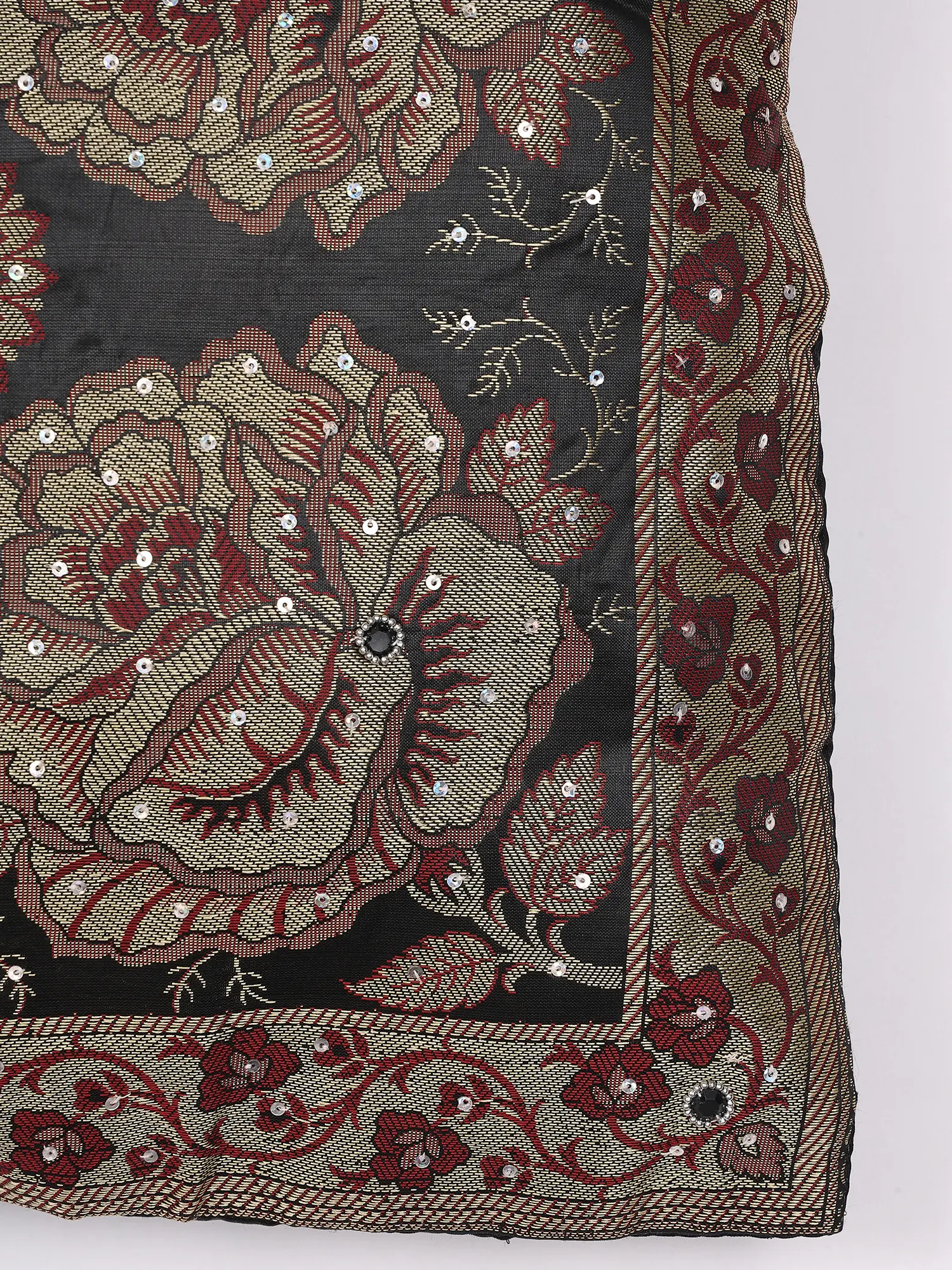 Painstakingly woven from lustrous art silk, this piece showcases the meticulous skill of artisans. Each intricate floral motif and delicate vine is brought to life through rich textures and detailed craftsmanship. The subtle gleam of sequin work is seamlessly integrated, adding a layer of sophisticated sparkle that catches the light beautifully.