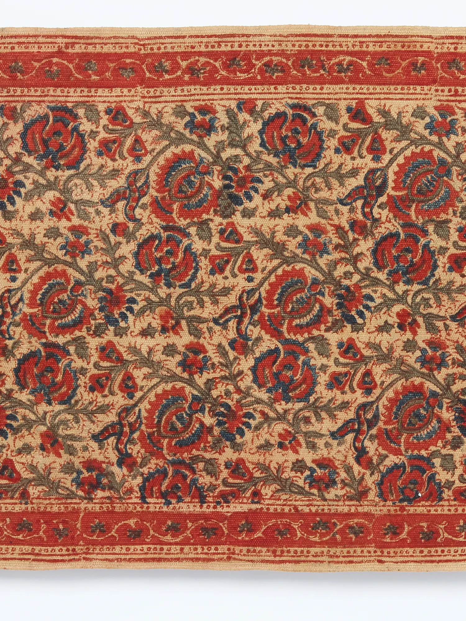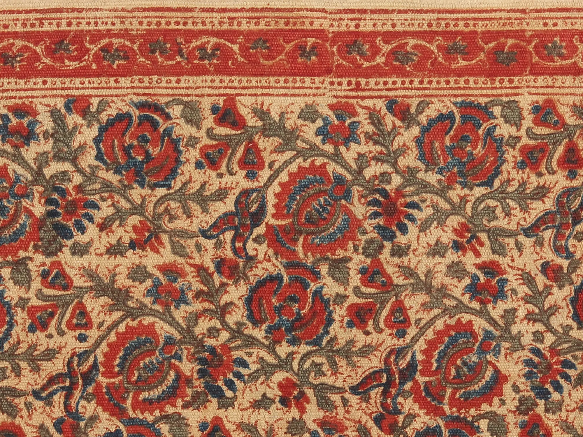 Bring the beauty of nature indoors with the Bleached Sand Kalamkari Dhurrie from Telangana, adorned with printed floral vines. Crafted with care and attention to detail, this dhurrie captures the essence of Telangana's lush landscapes and vibrant flora, infusing your home with warmth and charm. Its bleached sand tones and stunning patterns evoking grace, creating a welcoming atmosphere in any room.