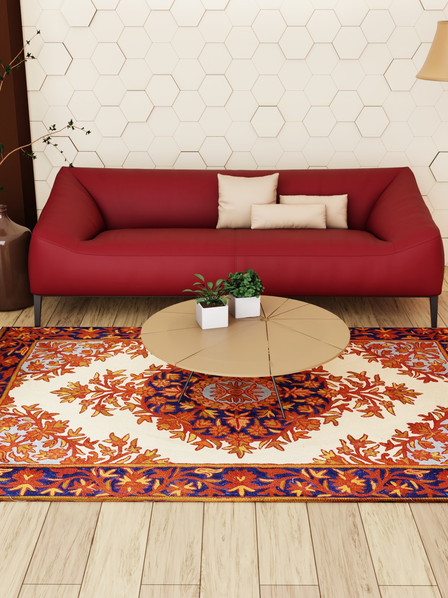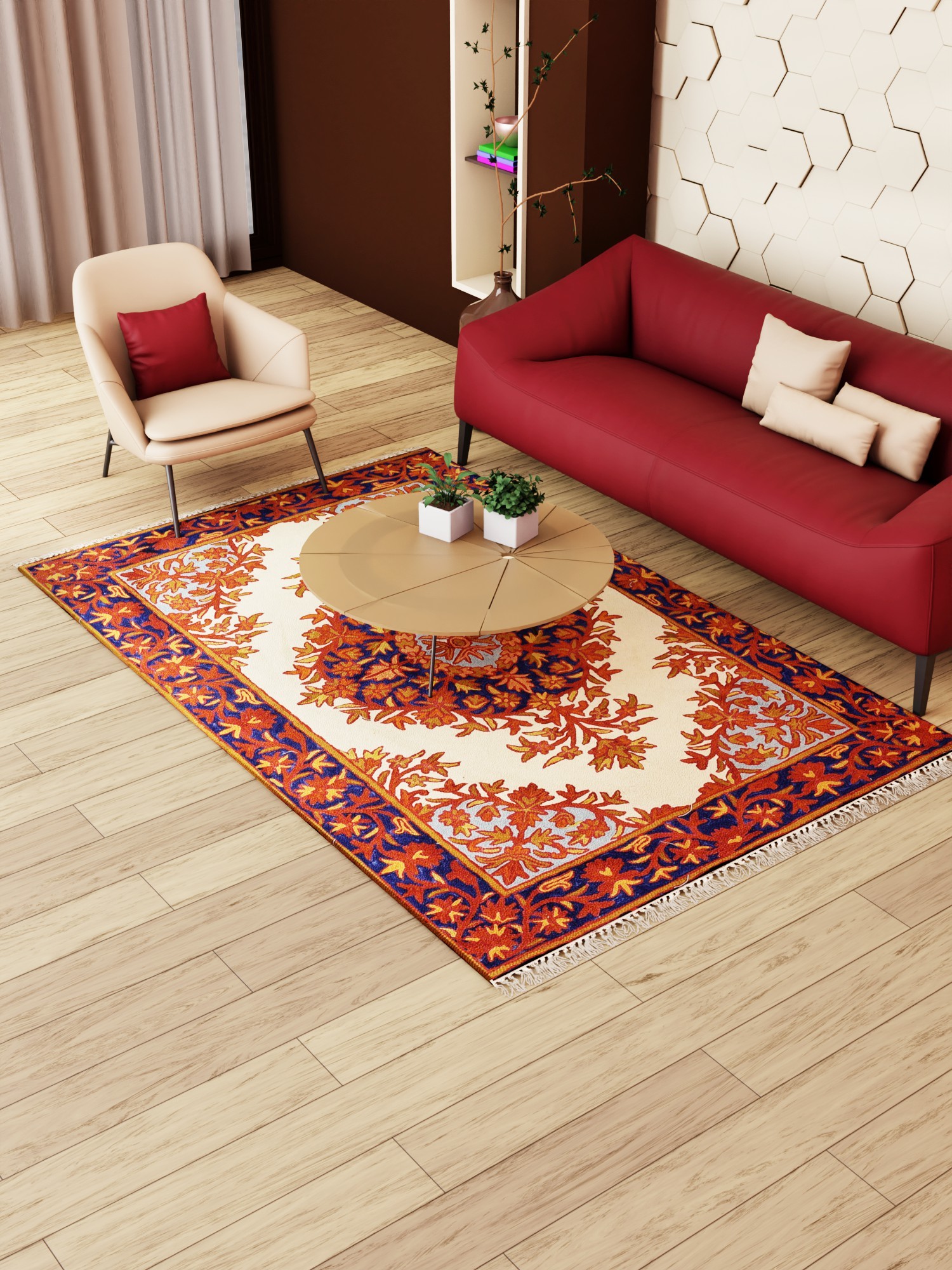 A carpet serves as a textile floor covering and can be seen in almost all Asian homes. European nations also are fascinated by their beauty and thus hand-knotted carpets are in great demand all over the world. A carpet typically consists of an upper layer of fabric and backing attached to it. Carpets can be made in any color by using dyed fibers. Different types of motifs and patterns are fabricated or embroidered on the fabric to beautify the floor. Indian craftsmen make carpets in such a way that every piece bears designs with attention to detail. Bright colors and high-quality fabric are used for their production.