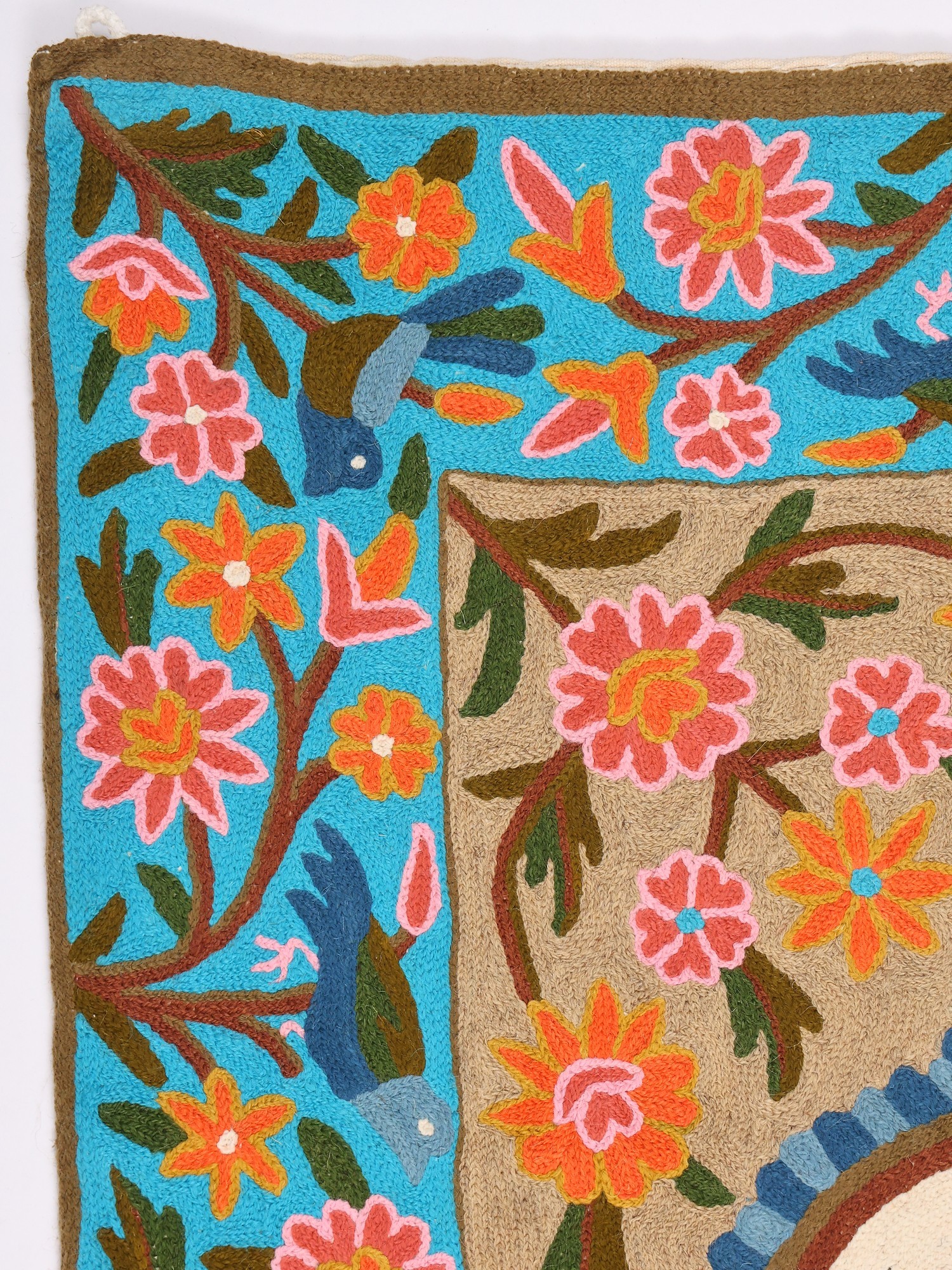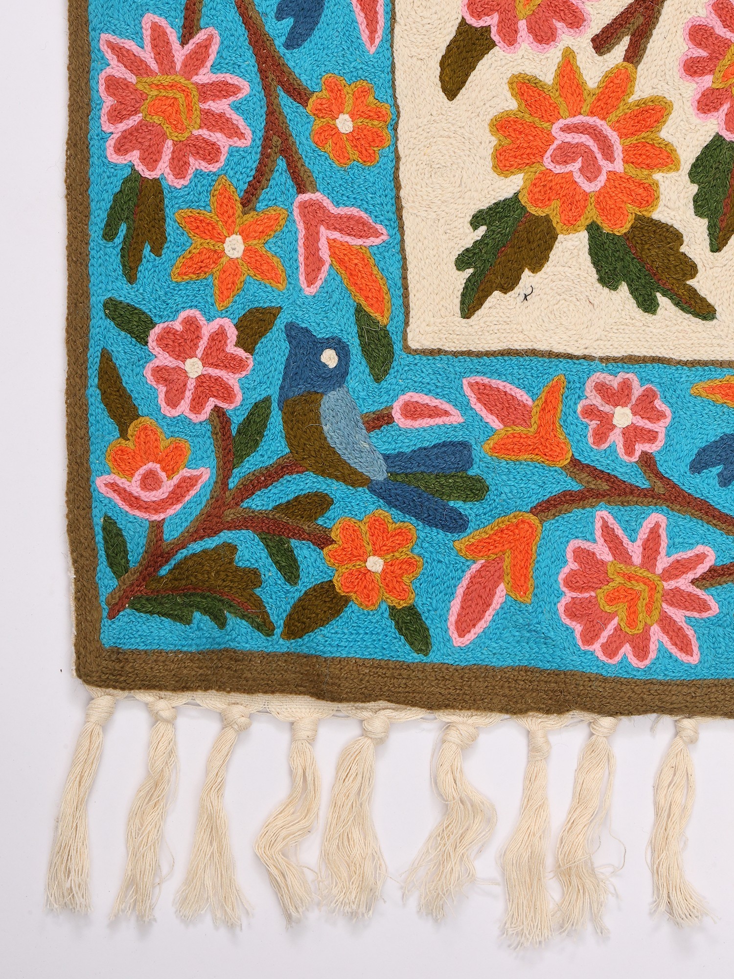 Tri-Color Floral Embroidered Wall-Hanging cum Carpet from Kashmir