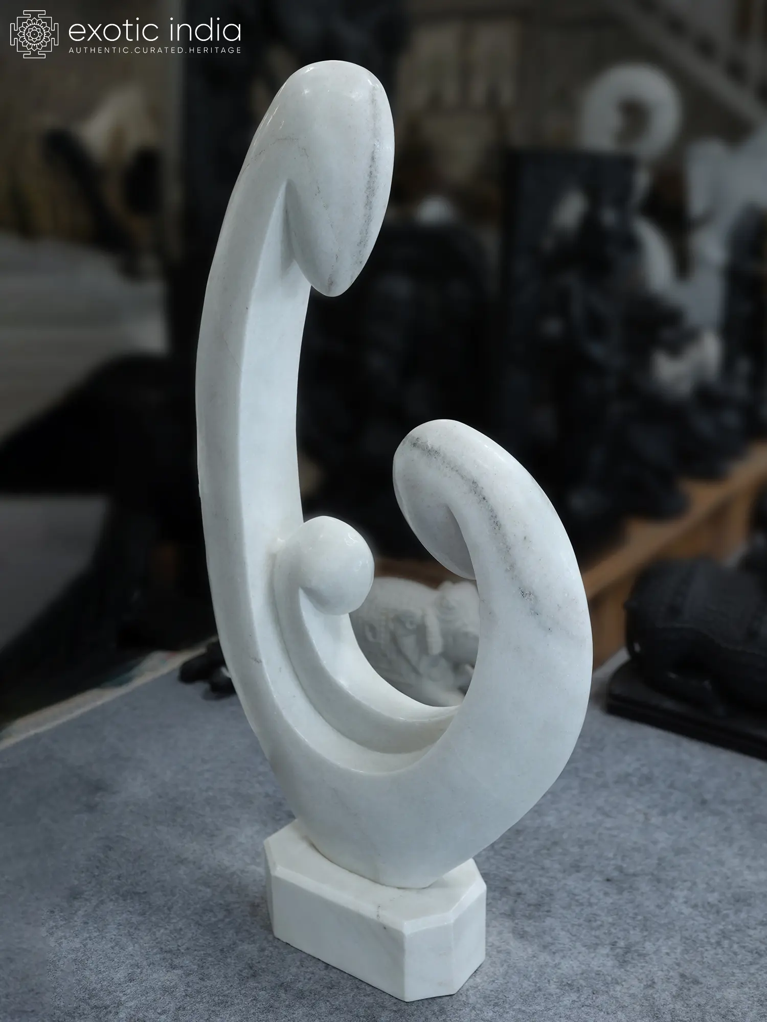 From a single, steady base, three curves rise in harmony. The smallest arc carries the softness of a beginning, a child held close within the larger rhythm of the form. Beside it, a gentler curve bends inward, attentive and watchful, its gaze shaped in stone as care of a mother.