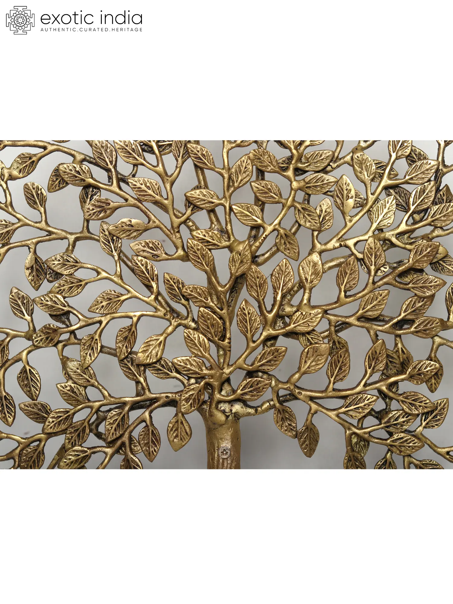 7" Superfine Goddess Kamdhenu Standing with Tree of Life on Wood Base | Brass Statue