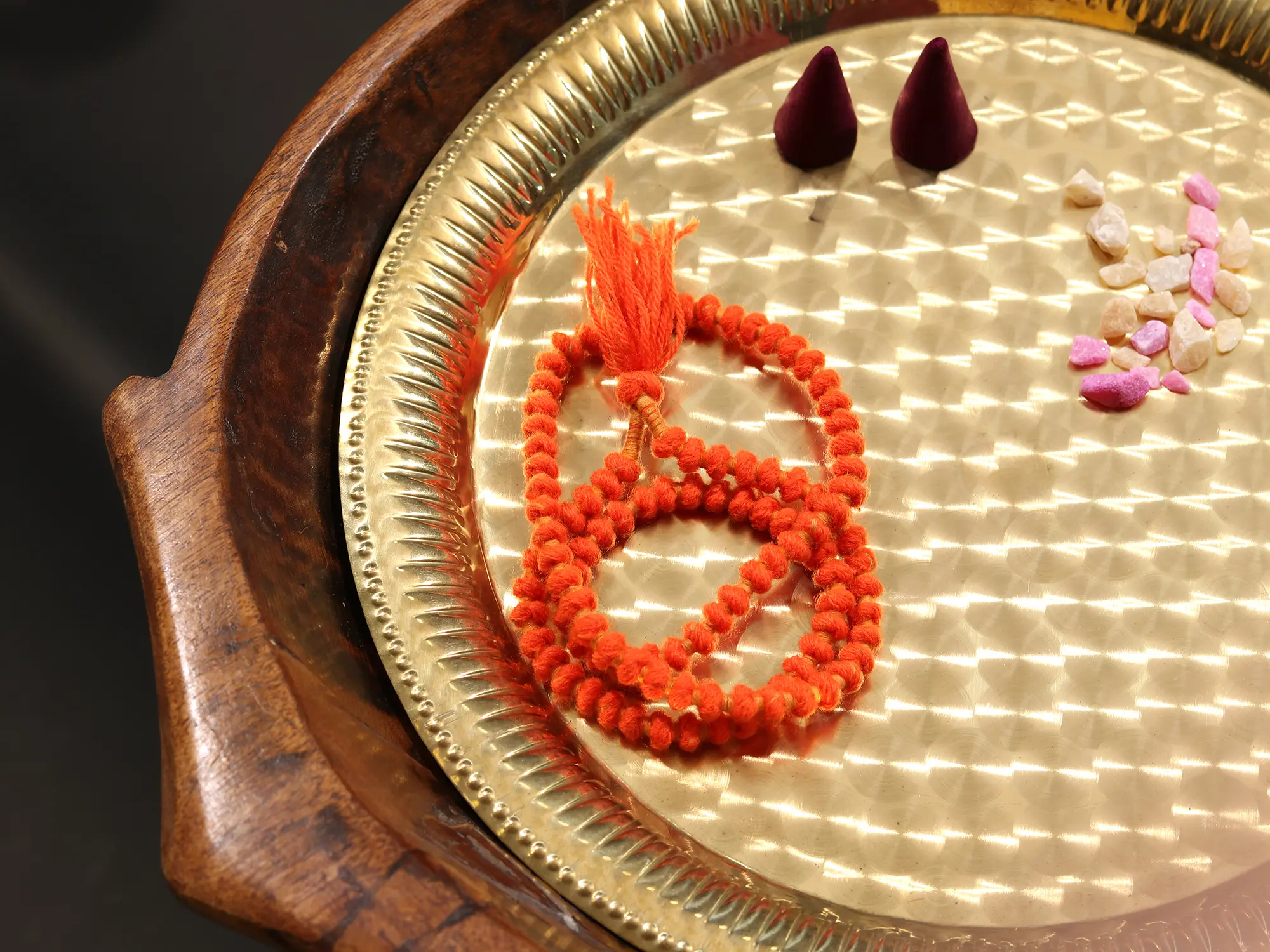 A classic brass plate, also known as a Thali, is an object used in traditional Indian kitchens for serving or covering food. It is made of brass, a long-lasting and corrosion-resistant alloy. The flat circular shape of the Thali is engraved with digital or traditional patterns. Some thalis are etched by hand, while others are engraved by machines. A computerised pattern is carved on this brass thali and serving food to the deities on this, will undoubtedly garner their blessings and assure the sacred event's success.