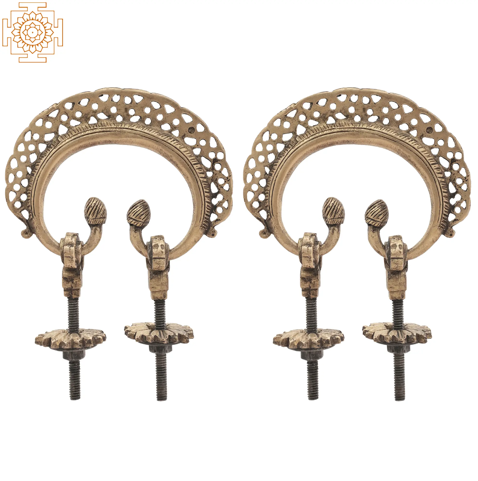 These brass door knockers boast a captivating design. The curved, half-moon shape is framed by an elegant, perforated lace-like border, showcasing exceptional attention to detail. The central portion of the knocker features delicately sculpted elements that add depth and visual interest. The overall design blends traditional craftsmanship with modern sensibilities, creating a timeless and versatile piece that will complement a range of architectural styles, from classic to contemporary. Each knocker is carefully cast and finished to ensure a durable and beautiful product that will last for years to come.