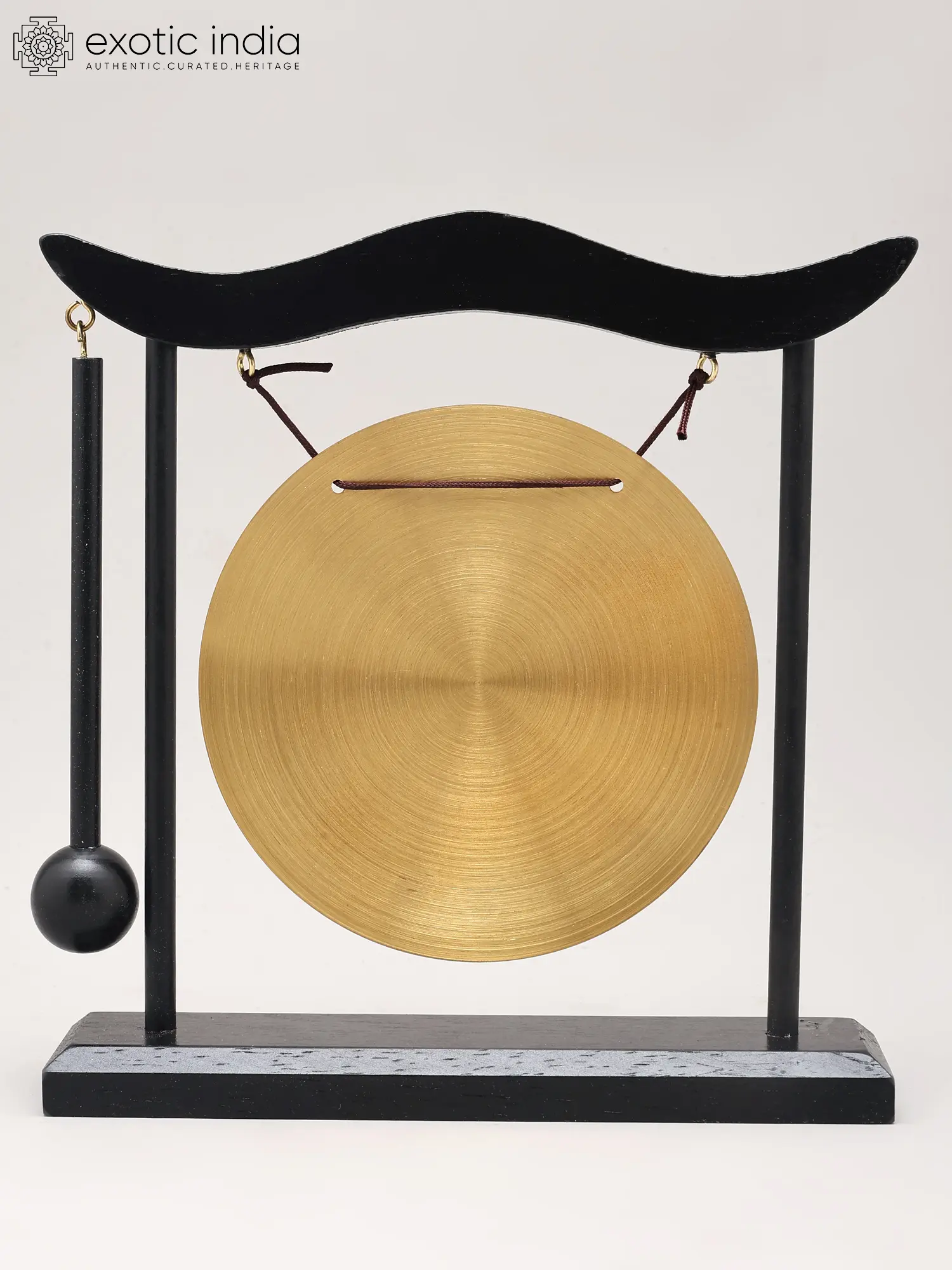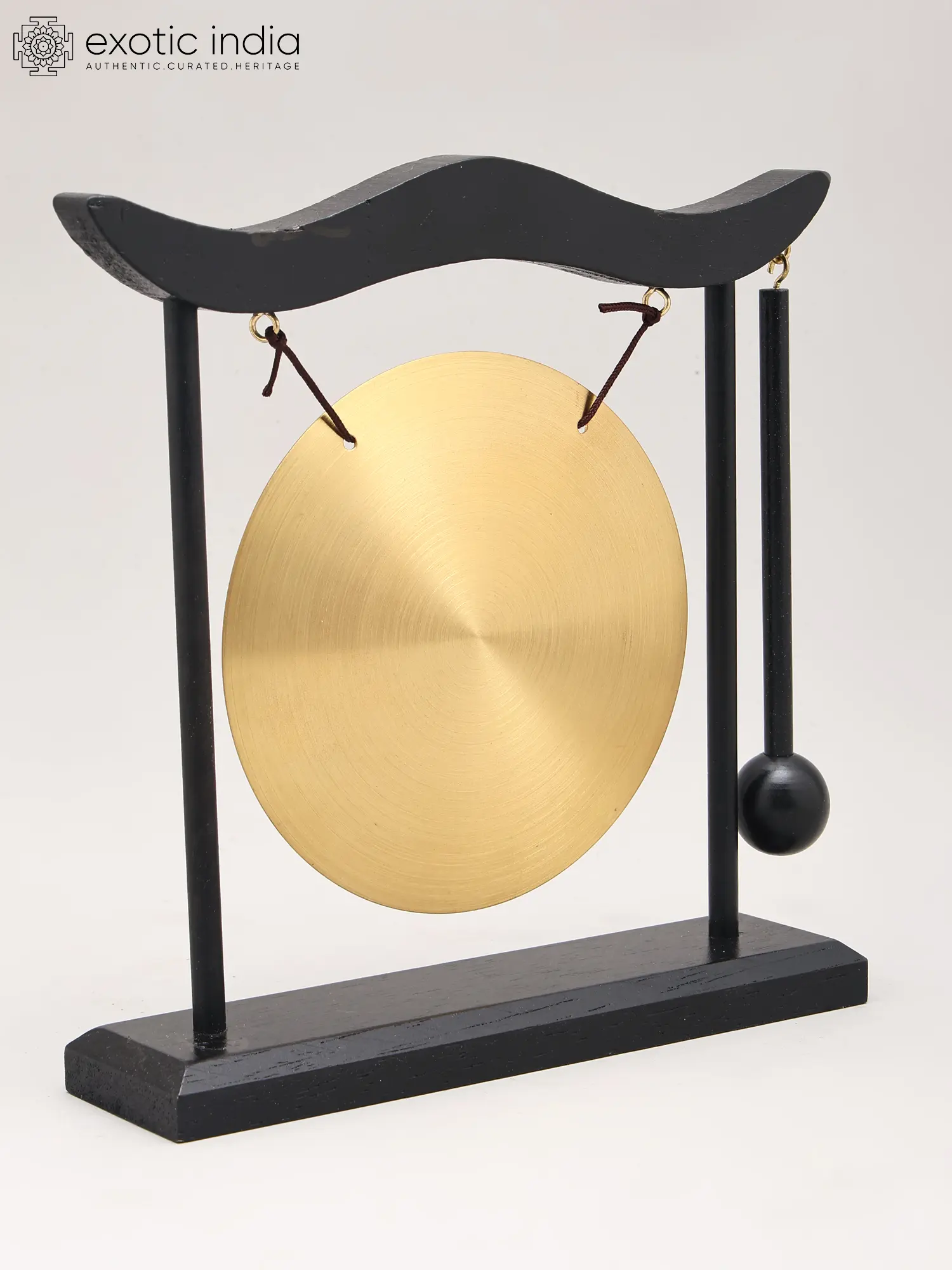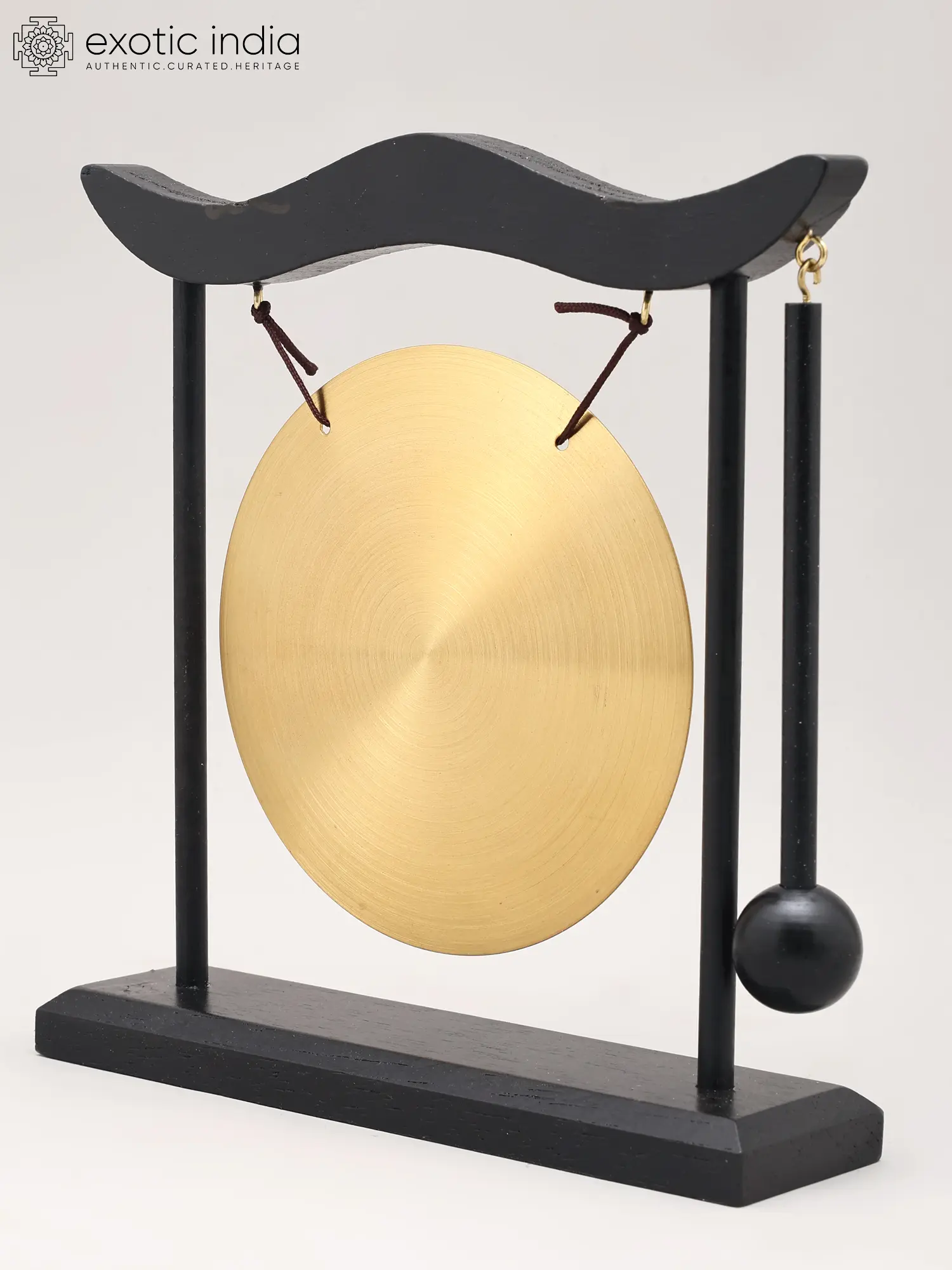 Decorative Brass Gong for Desk Display with Wood Stand and Striker