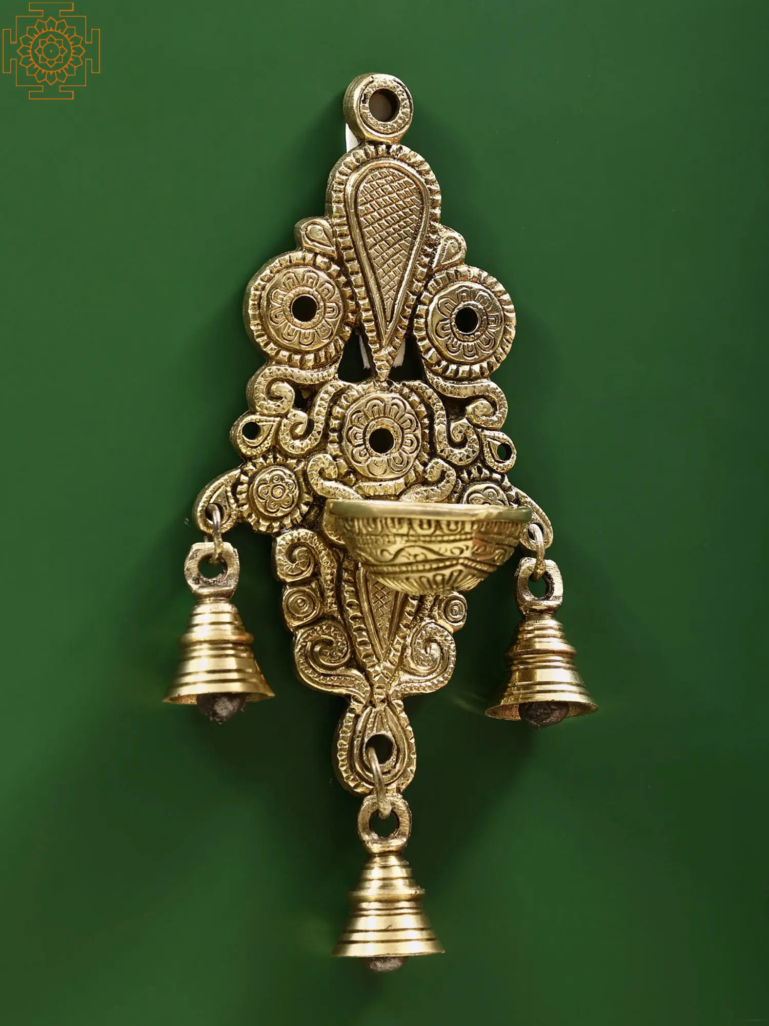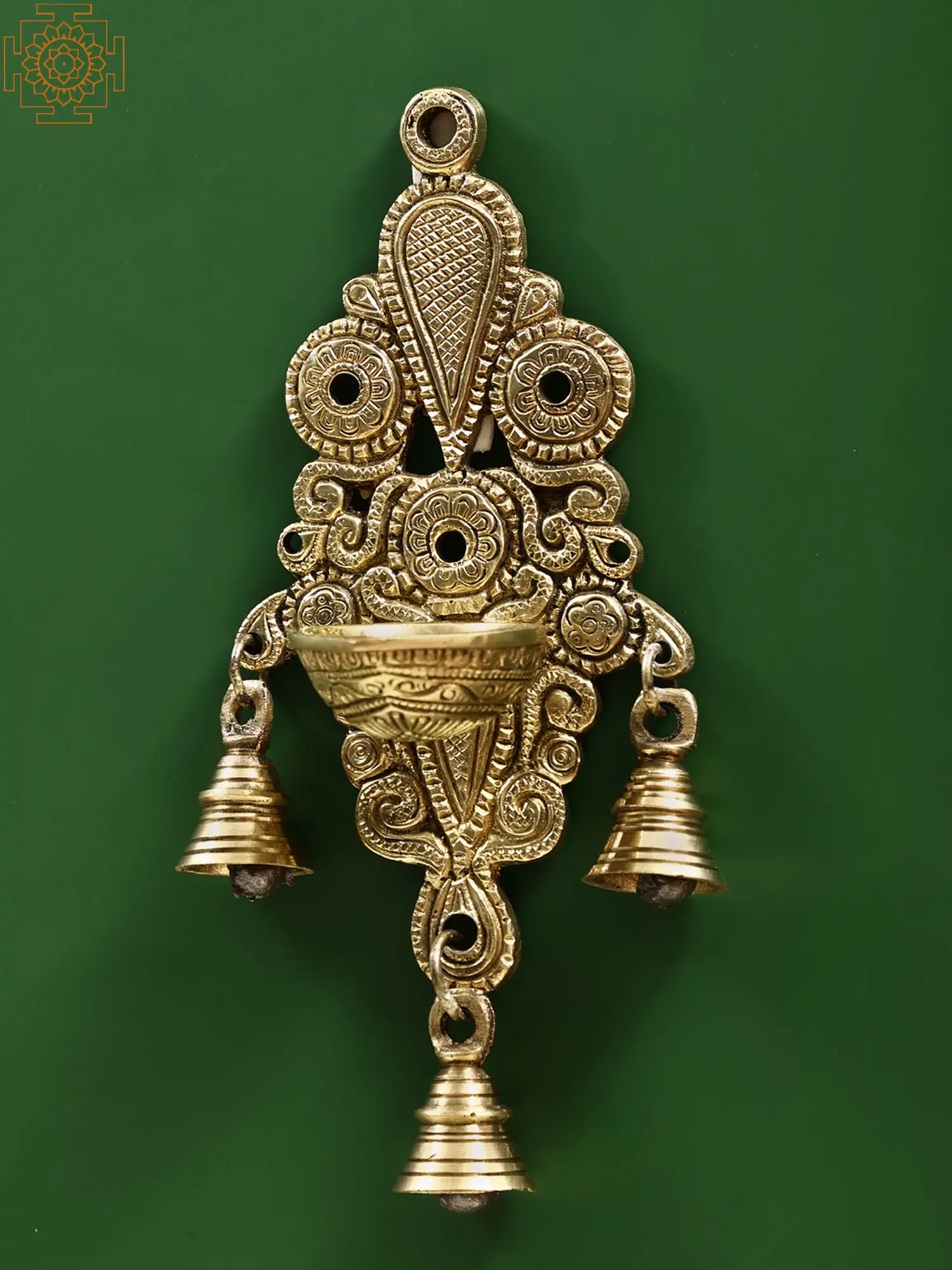 Crafted with superb details, in the manner of traditional lamps, this brass hanging Diya is a thing of exquisite beauty for your space. Lovely details, floral motifs, and the shine of brass lend the lamp a charm, which is amplified by the addition of Ghanti or bells. The Diya in the center is a thing of artistic value and utility, which will light up to fill the ambiance with divine light.