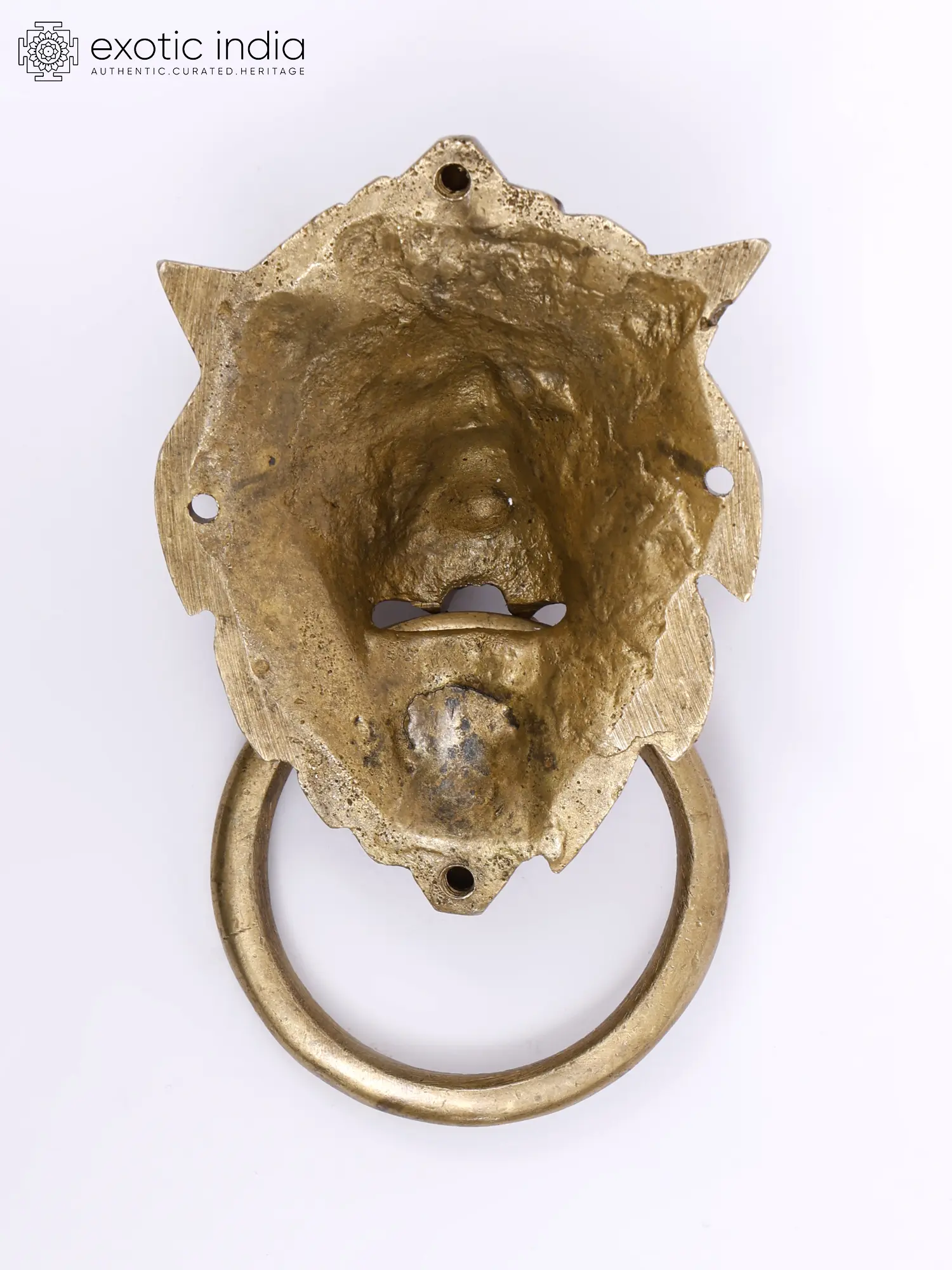Lions are seen as majestic and regal mammals that signify strength and authority. Their use in Indian art and practical products has been widespread. They've been employed as throne crown images, seats, and pedestals. Their visage has also appeared on regal jewelry. This Door Knocker is a unique, practical item that features the lion as a sign of bravery. The knocking ring is set inside the lion's mouth, and the sculpture is painted green. This is an extremely lovely utilitarian object with profound meaning.