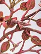 Features delicate flowers, leaves, and small birds.