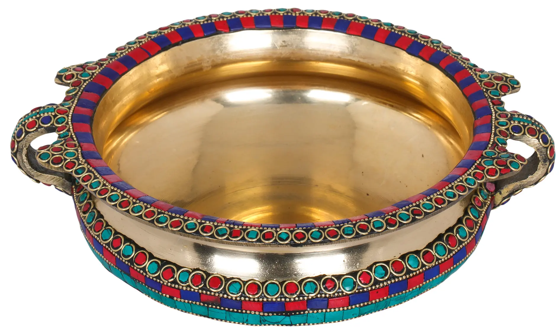 The living room of your house should be decorated in such a way that every corner and element should leave a good impression on the people that visit. This Urli is a great brass decorative pot that adds flair to the decor of the room in which it is kept. The amazing inlay work of rich colors (red, blue, and turquoise) that runs over the rim, handles, and curved body of the Urli is the center of attraction. You can fill the bowl with a good amount of water and float some beautiful flowers on top to light up the space.
