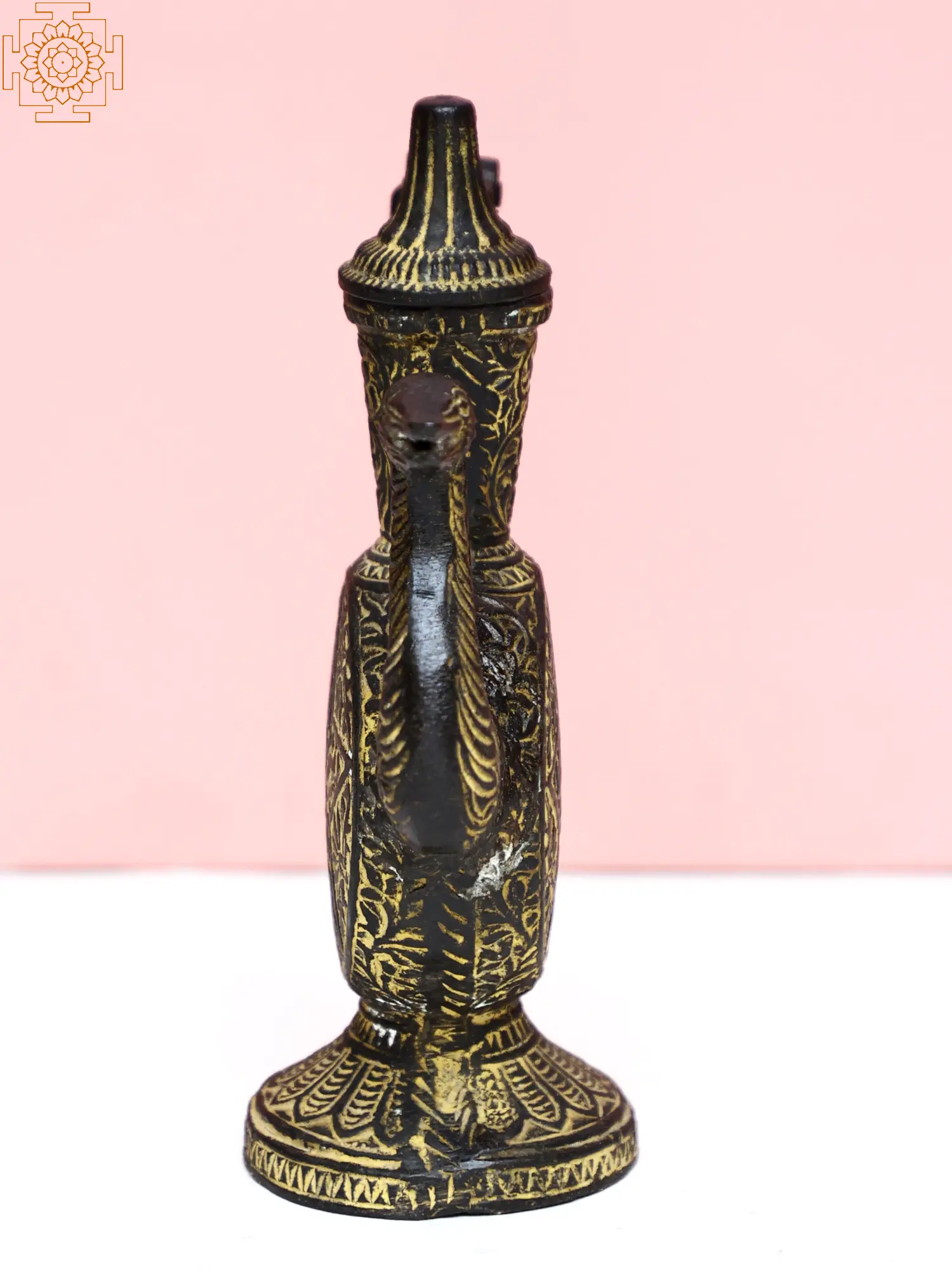 13" Copper Gold Plated Engraved Surahi With Inlay Work | Home Decorative Item