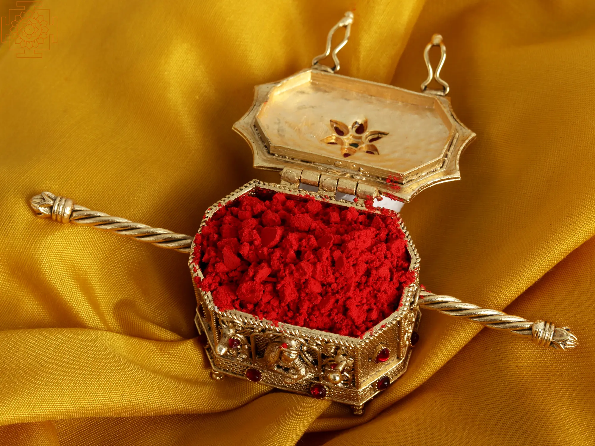 Imagine a bride’s doli—the sacred vessel of dreams and promises. This sindoor box, crafted, captures that essence. Gold accents dance across its surface, delicate carvings evoking wedding rituals and new beginnings. Keep it on your dressing table—the sindoor within becomes more than makeup; it becomes a symbol of love and commitment. Each time you touch it, feel the weight of traditions—the blessings of ancestors, the hopes for a shared future.