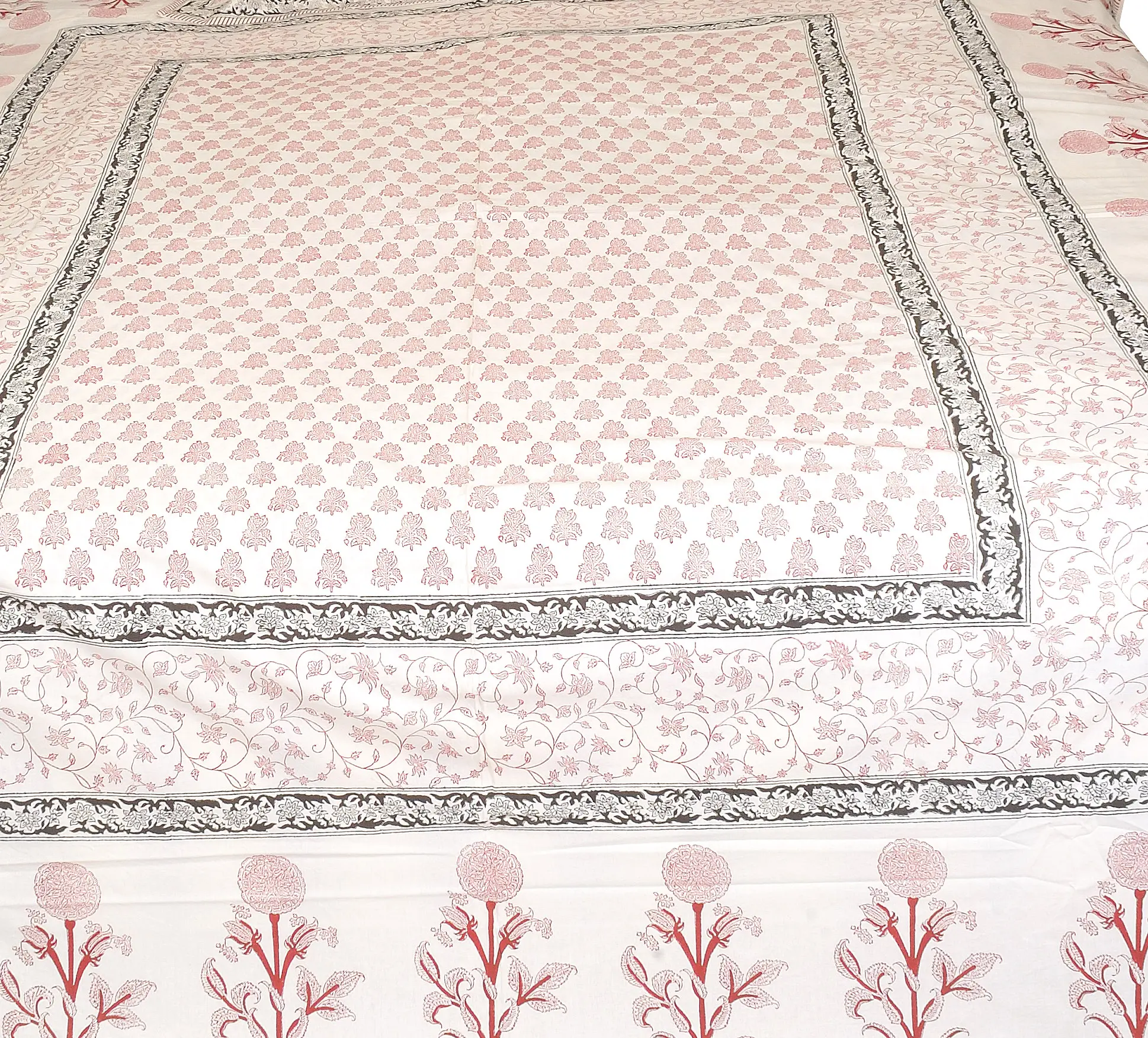Embrace the timeless elegance of Jaipur with the Bright-White Bedspread, featuring printed booties and flowers. Each motif is a testament to Jaipur's rich artistic heritage, adding a touch of royalty to your bedroom. The bright-white hue exudes purity and serenity, creating a calming ambiance that soothes the soul. Let the bedspread be your sanctuary, where every night is a celebration of grace.