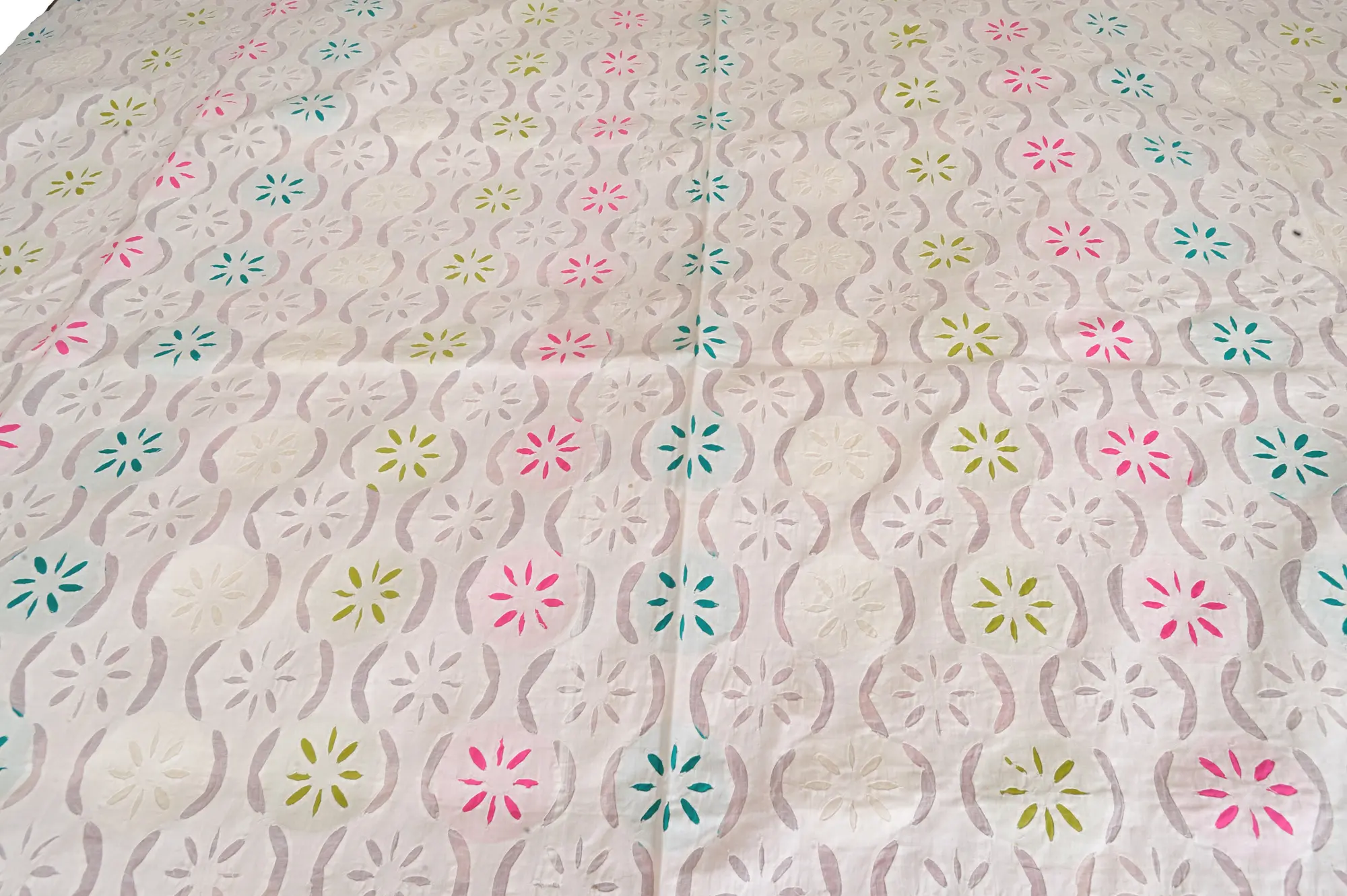 Forged in pure cotton, this bedspread epitomises luxury and comfort, enveloping you in softness as you drift into dreams. The pristine white hue exudes serenity, while the lovely cutwork flowers add an enchanting touch, symbolising beauty and grace. Beyond mere decoration, this bedspread offers warmth and elegance to your bedroom sanctuary. This creation ensures a blissful night’s sleep, while the design complements any decor style. Enrich your resting haven with this stunning work of art, where every stitch whispers tales of sophistication and tranquility.