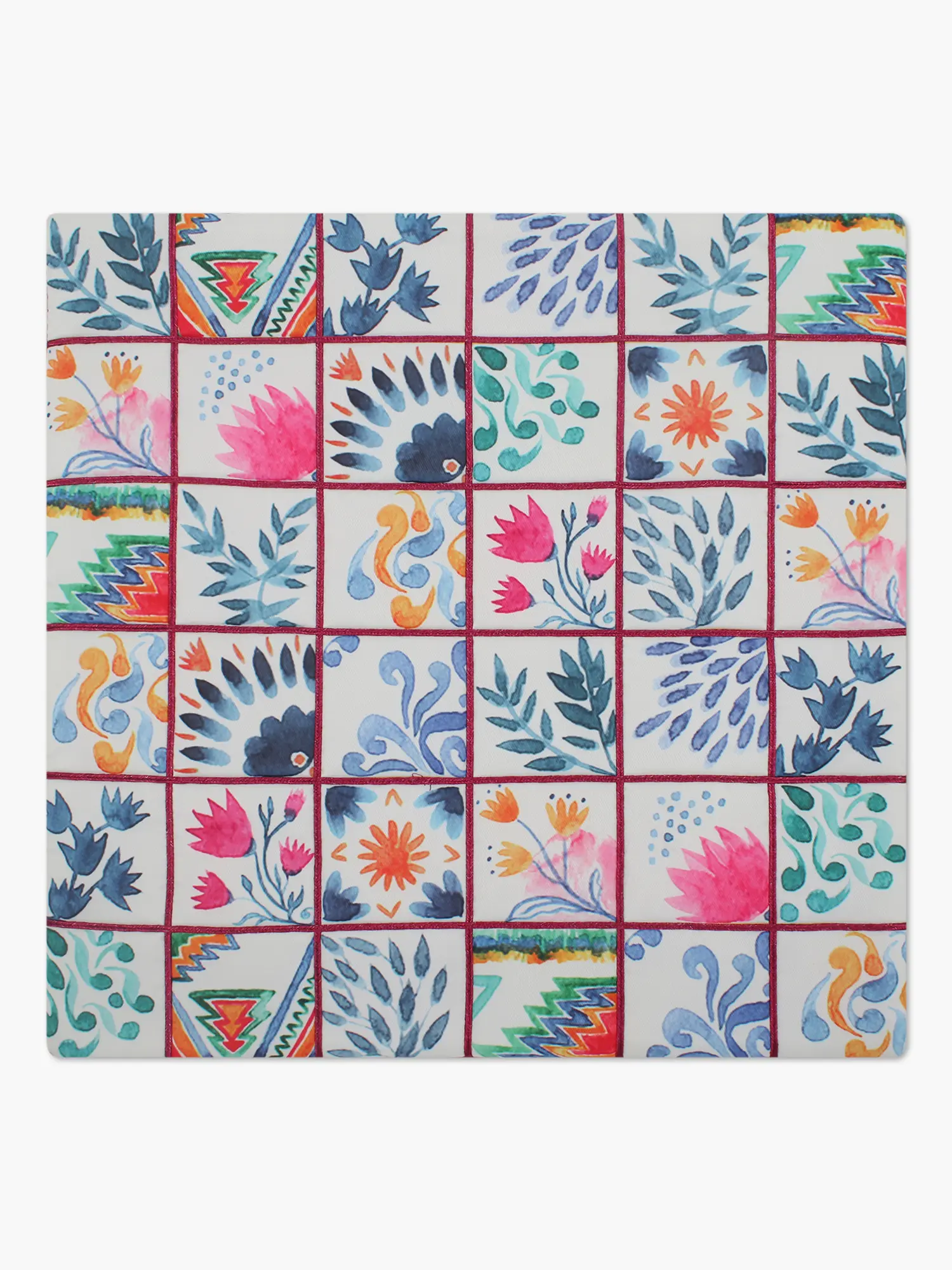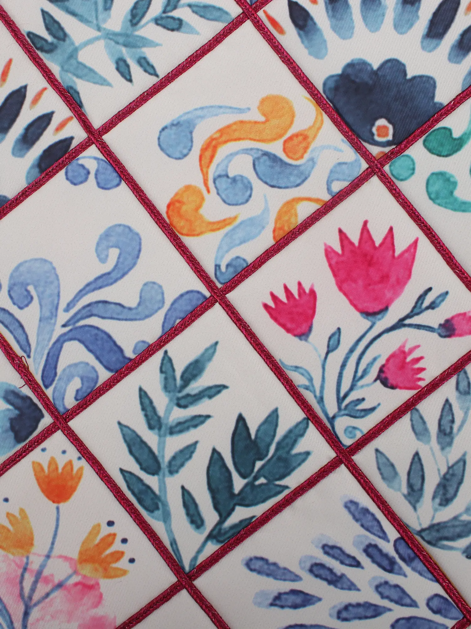 This Brilliant-White Floral Printed Cushion Cover is a captivating piece of home decor with a unique checkered design. Each box within the pattern features distinct floral motifs, forming a lively and vibrant collage. This creative arrangement transforms the cover into a joyous burst of color and beauty.
