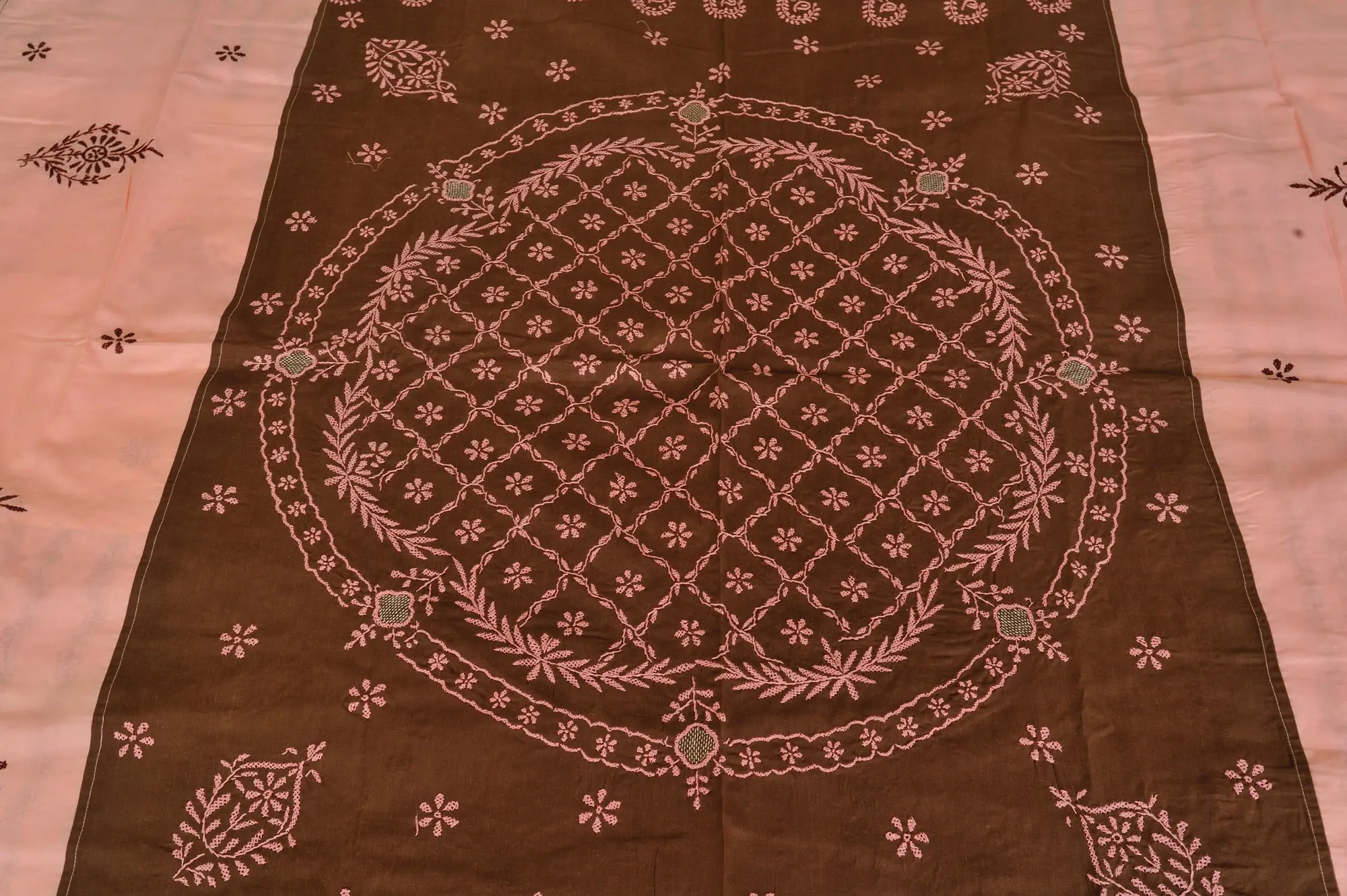 Envelop yourself in luxury with the Brown and Pink Lukhnavi Chikan Bedspread, adorned with exquisite floral hand-embroidery. Each stitch is a testament to Lucknow's rich textile tradition, where craftsmanship meets elegance in perfect harmony. The blend of brown and pink hues exudes timeless sophistication, transforming your bedroom into a sanctuary of refined beauty. Let the bedspread be a reflection of your discerning taste and appreciation for the finer things in life.