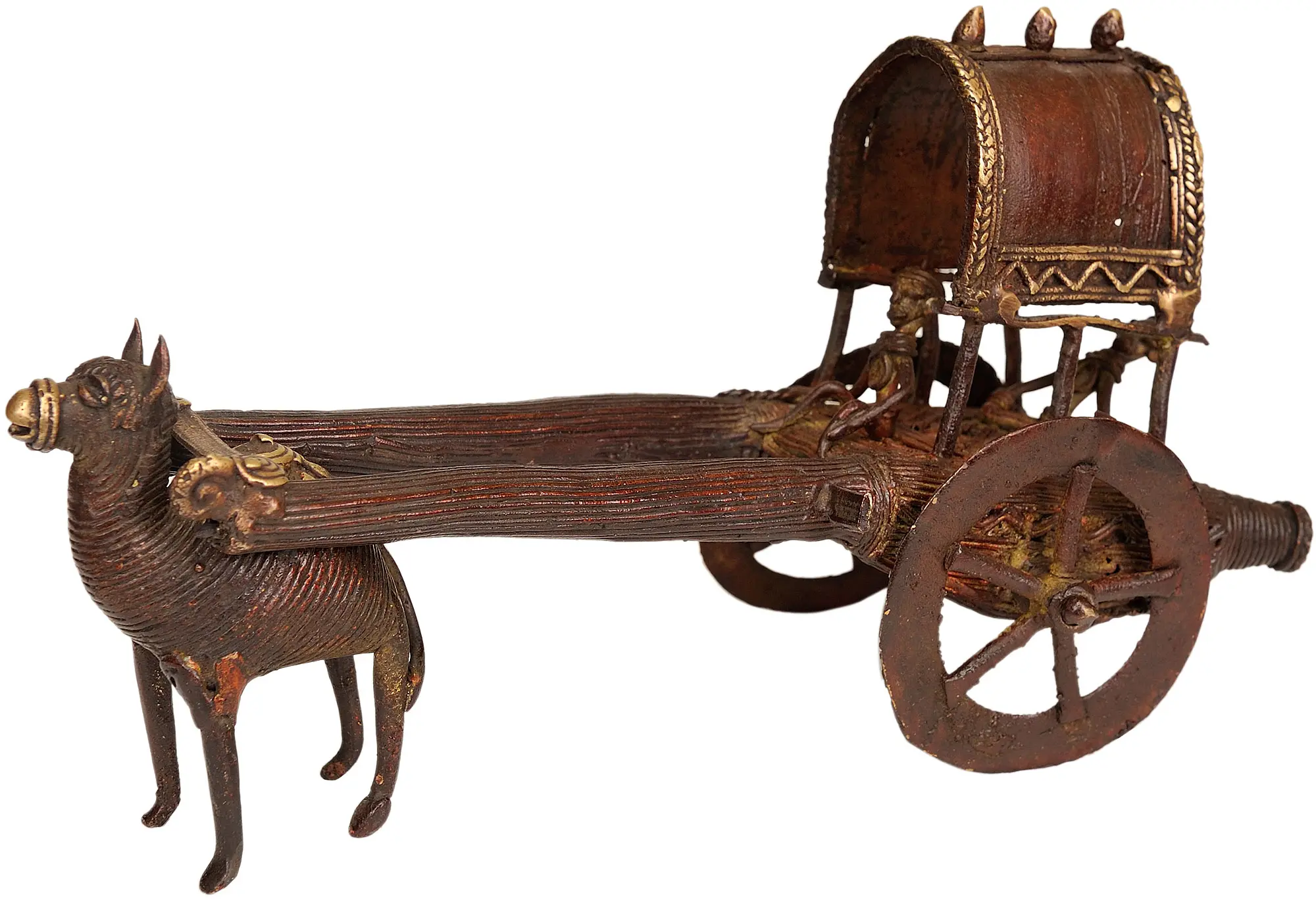 6" Ganesha Drawing the Cart with His Mouse on It | Handmade Brass Sculpture
