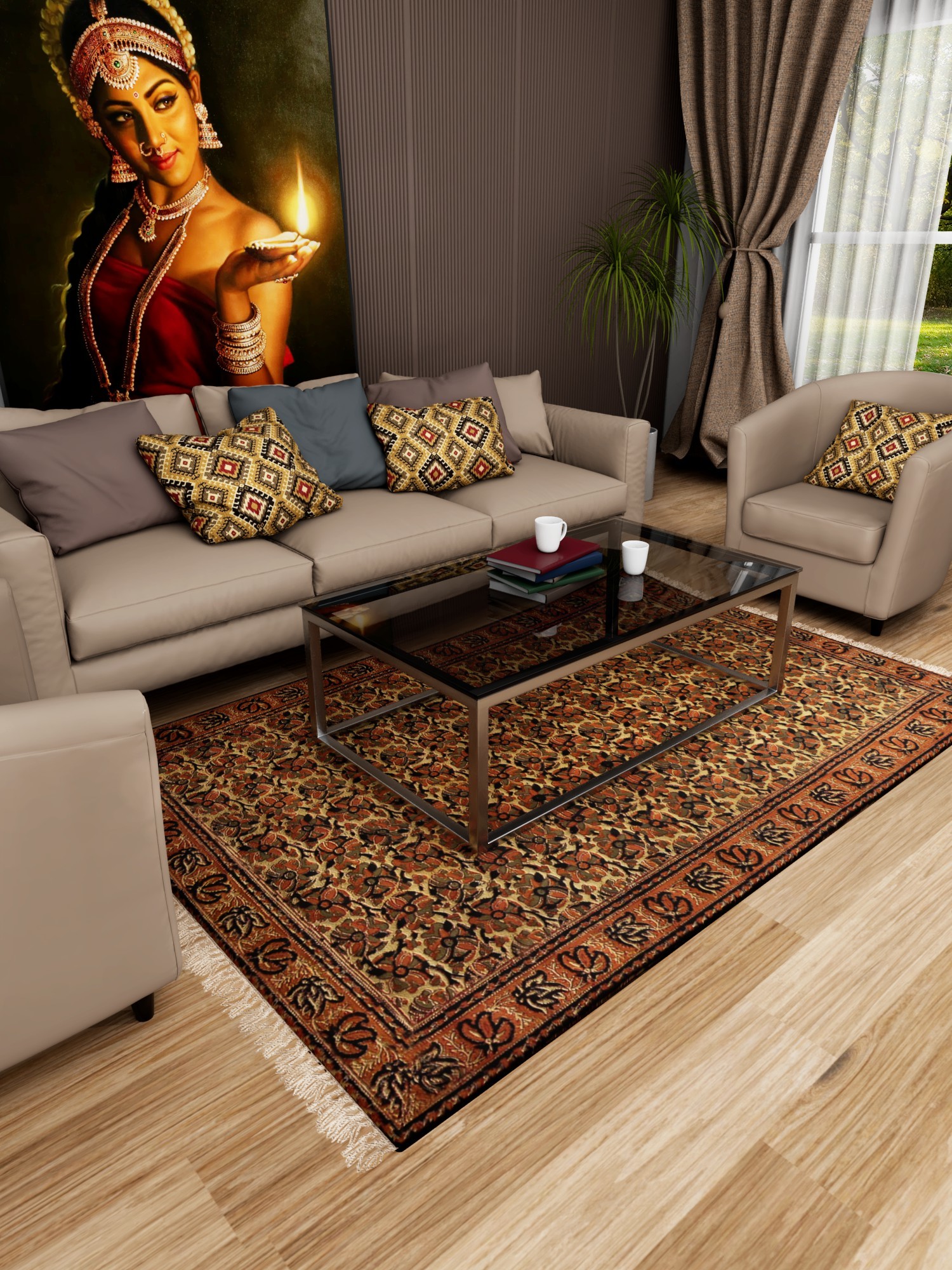 A carpet serves as a textile floor covering and can be seen in almost all Asian homes. European nations also are fascinated by their beauty and thus hand-knotted carpets are in great demand all over the world. A carpet typically consists of an upper layer of fabric and backing attached to it. Carpets can be made in any color by using dyed fibers. Different types of motifs and patterns are fabricated or embroidered on the fabric to beautify the floor. Indian craftsmen make carpets in such a way that every piece bears designs with attention to detail. Bright colors and high-quality fabric are used for their production.