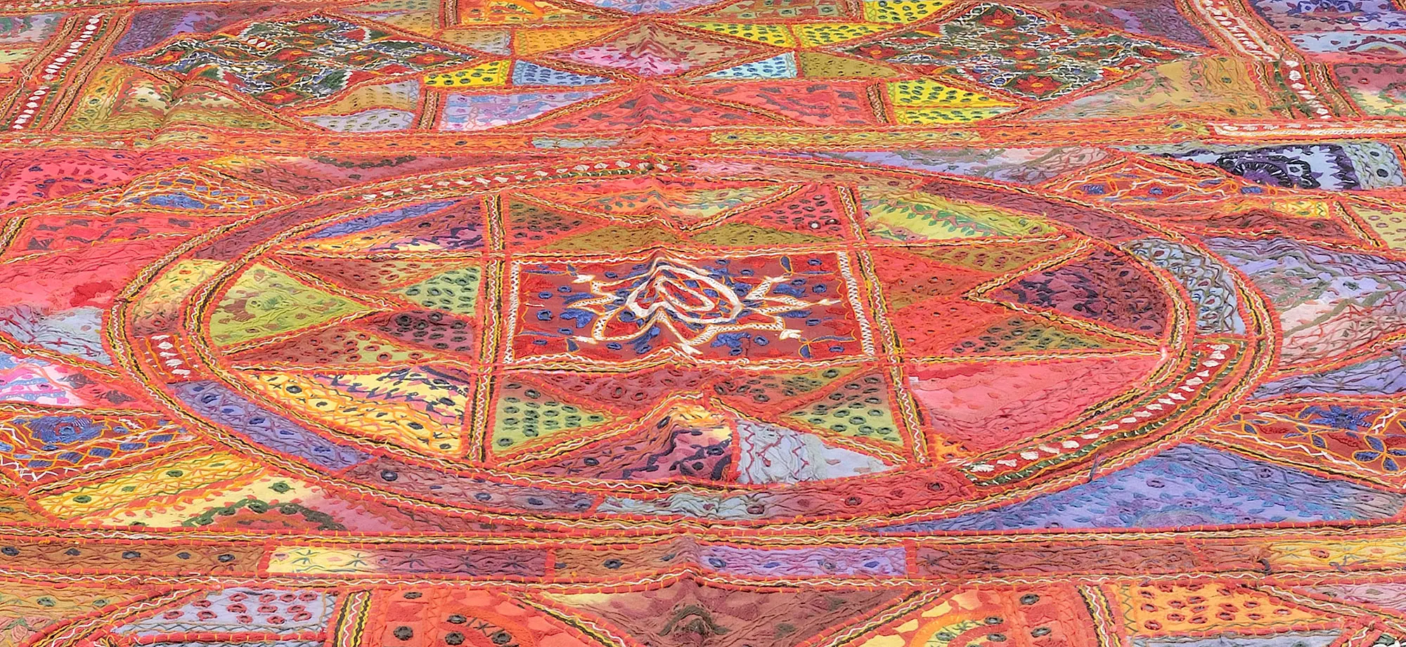 Hand-Embroidered Bedspread from Kutch with Geometrical Designs