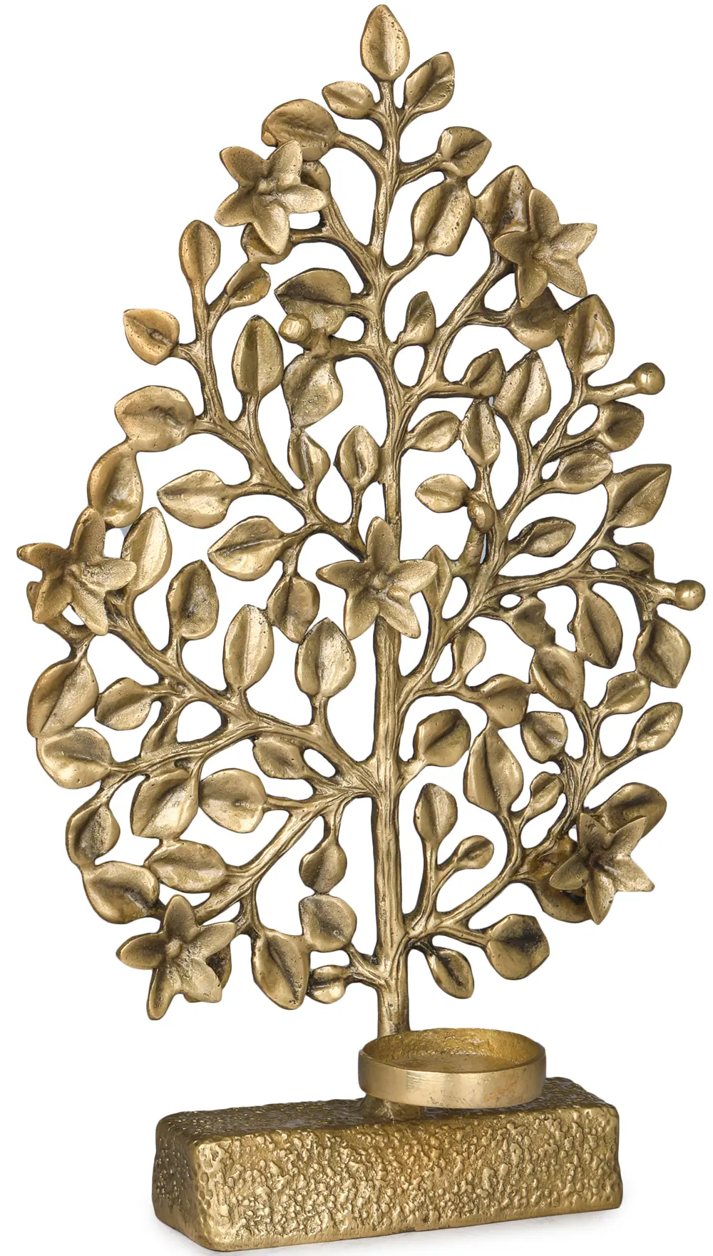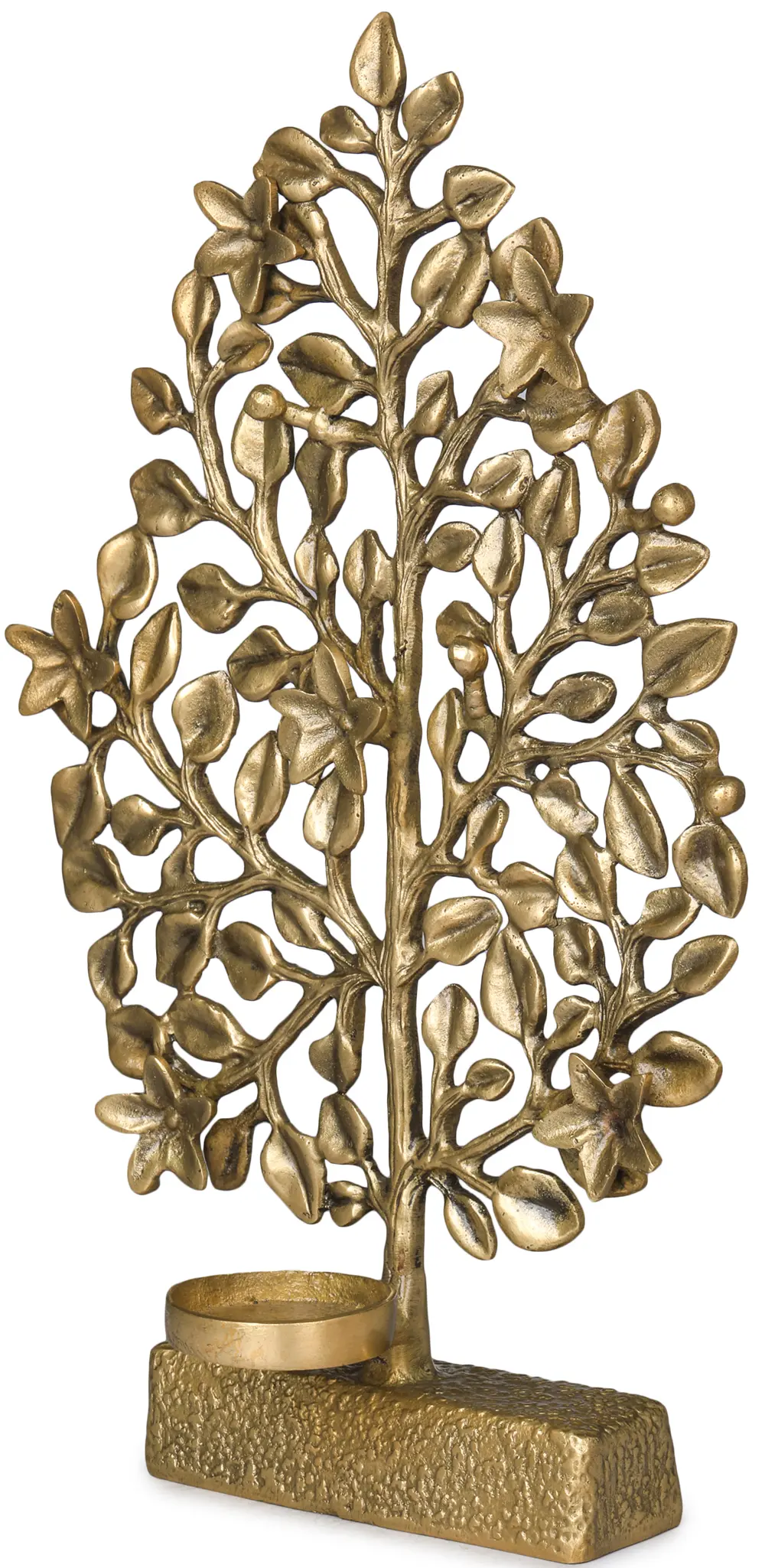 This simple yet elegant depiction of the Frangipani tree with gracefully bloomed flowers brings back memories of our childhood when we would play around these trees and inhale the light and tranquil smell of Gour Champa otherwise known as Frangipani. Made of brass, this tree comes with a Diya holder which is placed so that when lit it brighten ups the entire tree and gives a sense of enlightenment. Placing this statue near a real plant will increase the look of a space manifold.