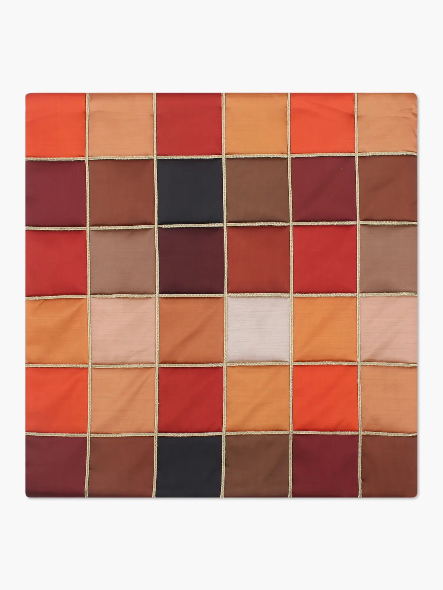 The retro charm meets modern sophistication, making it a statement piece for any sofa or bed. The smooth texture of satin elevates the tactile experience, while the intricate check pattern and Zari Patti detailing pay homage to a bygone era. This cushion cover seamlessly marries retro aesthetics with contemporary elegance.