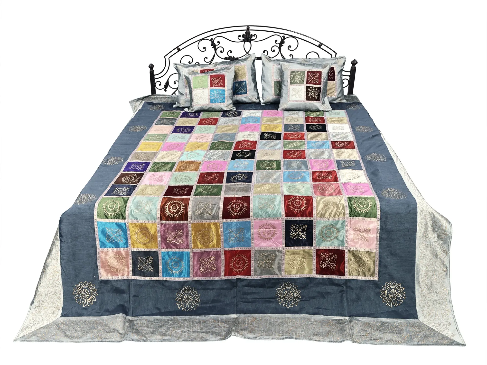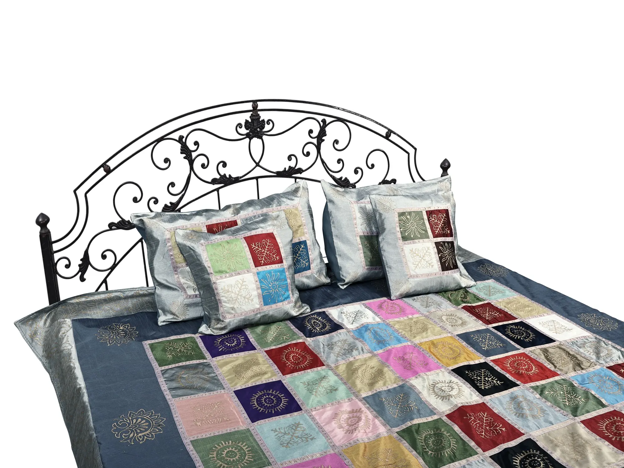 Transform your bedroom into heaven of art and comfort with our China-Blue Art Silk Gold Print Multicolored Patch Work Bedcover from Jaipur. The vibrant China-blue hue, combined with intricate gold prints and multicoloured patchwork, creates a visual symphony that captures the essence of Jaipur's artistic heritage. The luxurious art silk fabric adds a touch of opulence, making this bedcover a statement piece that seamlessly blends tradition with contemporary style.